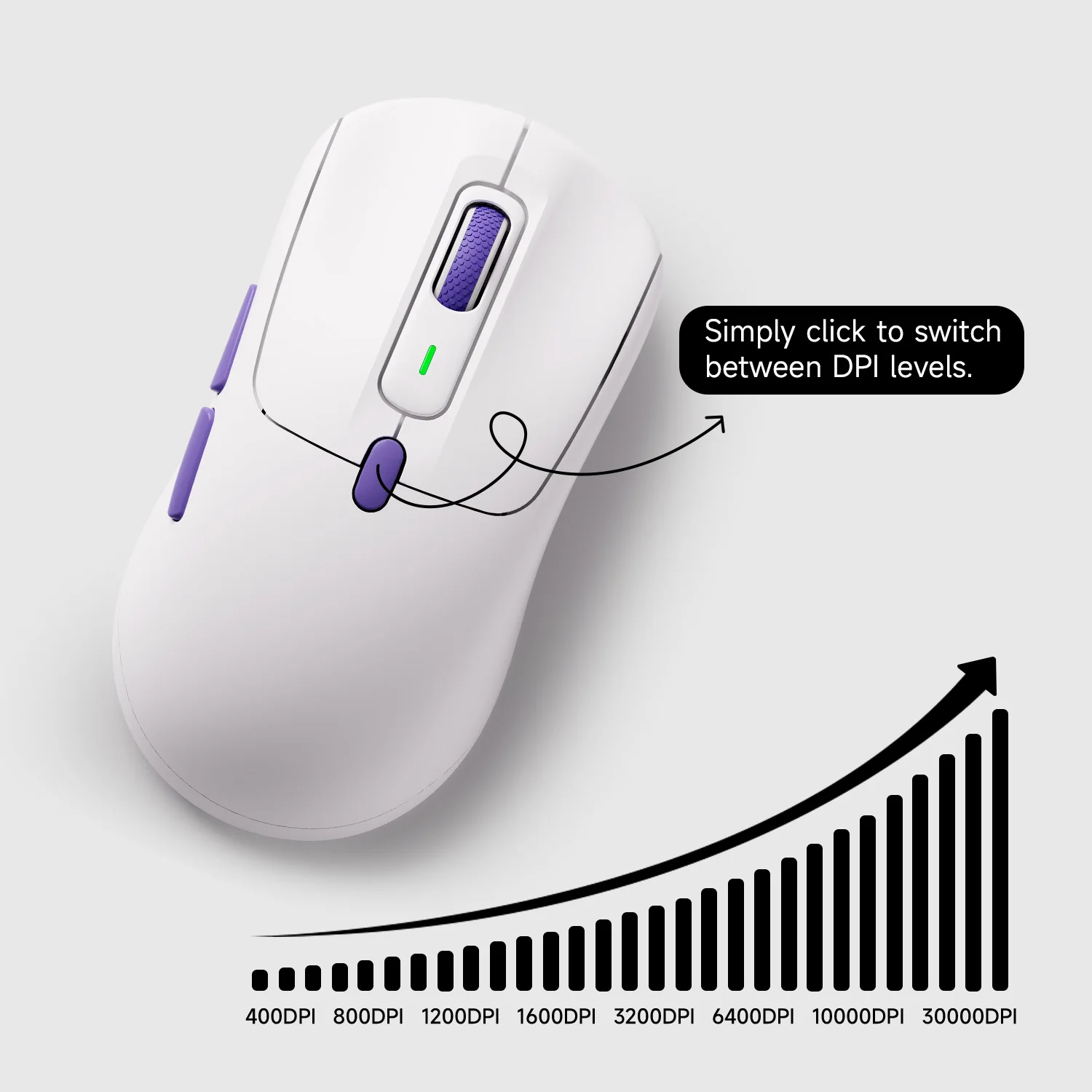 El mouse para juegos Pulse 01 ofrece 8 niveles de DPI personalizables, que van desde 400 a 30.000, lo que le permite ajustar su sensibilidad para cualquier tarea o juego.Esta flexibilidad garantiza un control preciso, ya sea que esté navegando por diseños complejos, trabajando en múltiples resoluciones de pantalla o jugando al más alto nivel.