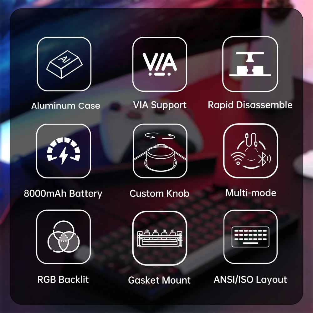Teclado×1, Manual×1, Cable×1, Extractor de teclas×1, Extractor de interruptores×1, Receptor×1, Silicions de junta, Estabilizador atornillado, Interruptores adicionales
