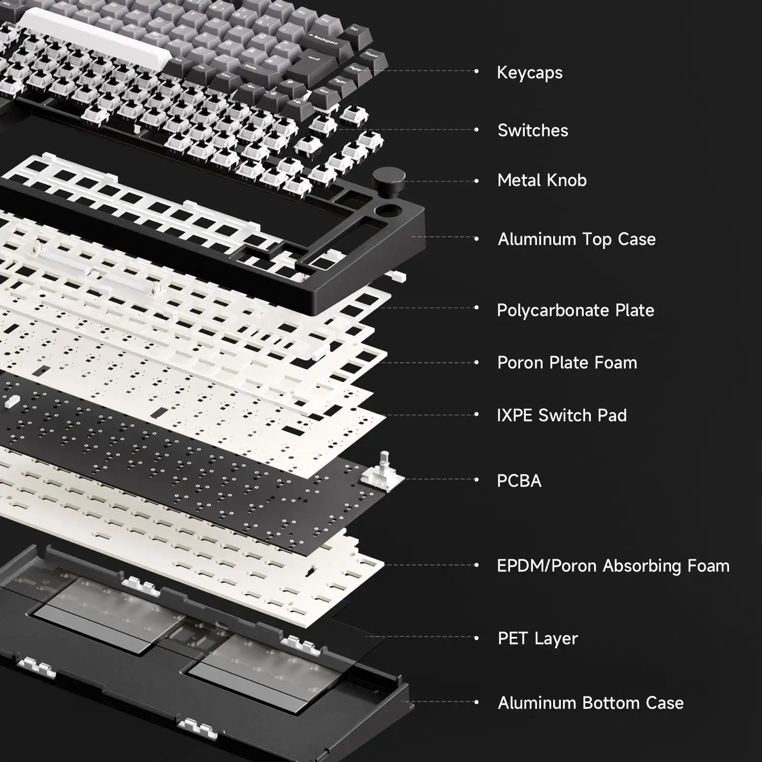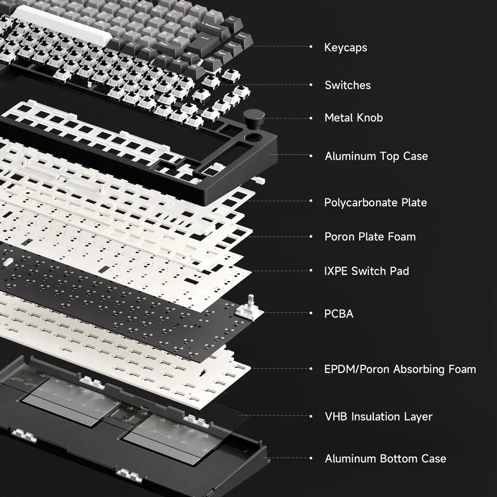 El teclado mecánico personalizado MonsGeek M1 V5 VIA está equipado con espuma de placa PORON, lo que reduce eficazmente el ruido generado por los interruptores de llave, lo que garantiza una experiencia de sonido táctil más pura y cómoda para el teclado.