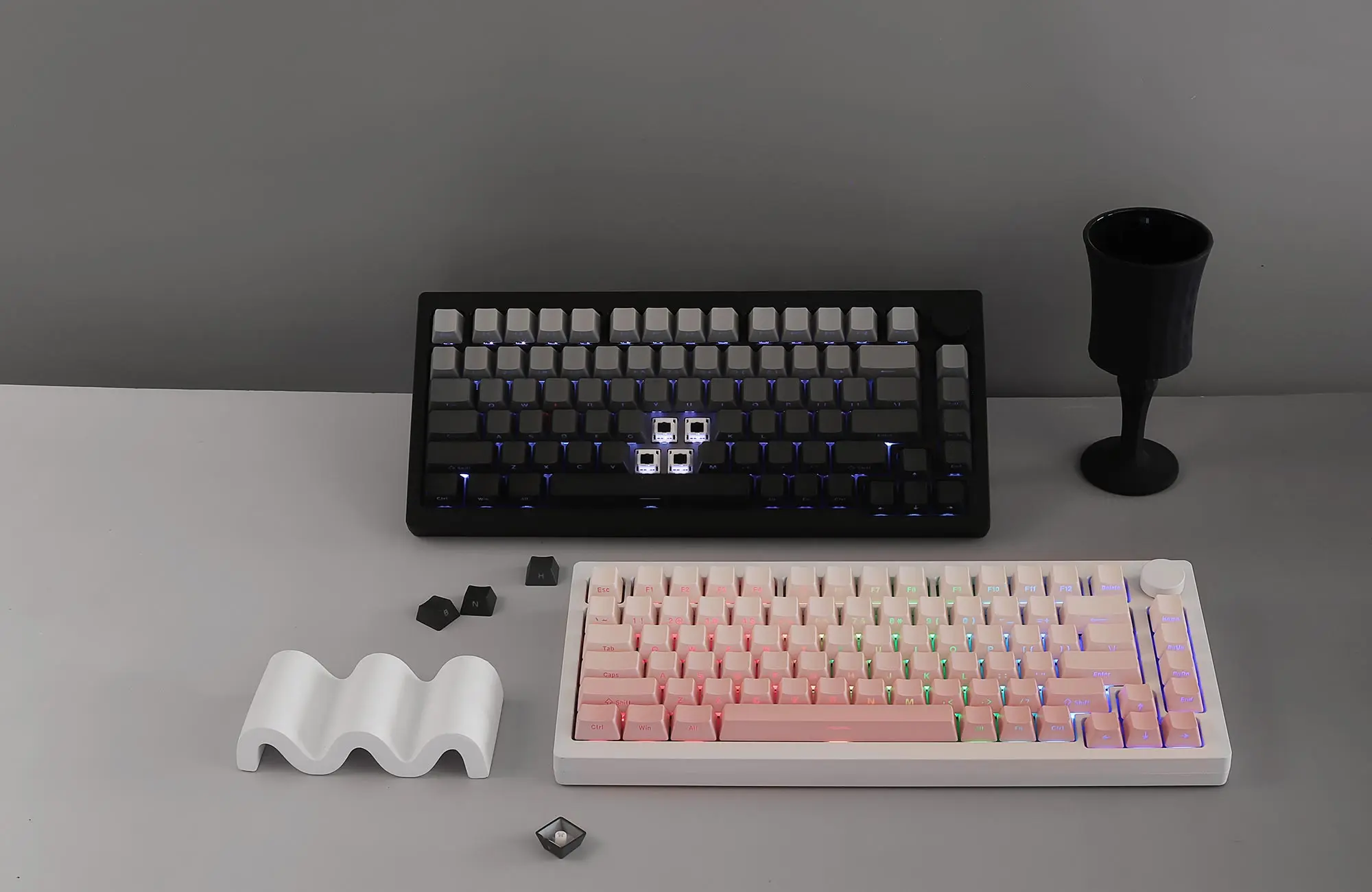 El teclado prediseñado M1/M1W V3 y el kit de bricolaje utilizan estabilizadores montados en placa de un solo color, lo que minimiza eficazmente la oscilación de las teclas.