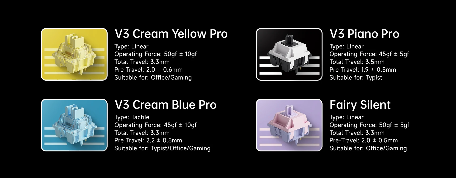 Akko V3 pro Piano / Akko V3 Cream Yellow Pro/Akko V3 Cream Blue Pro/Akko Fairy interruptores