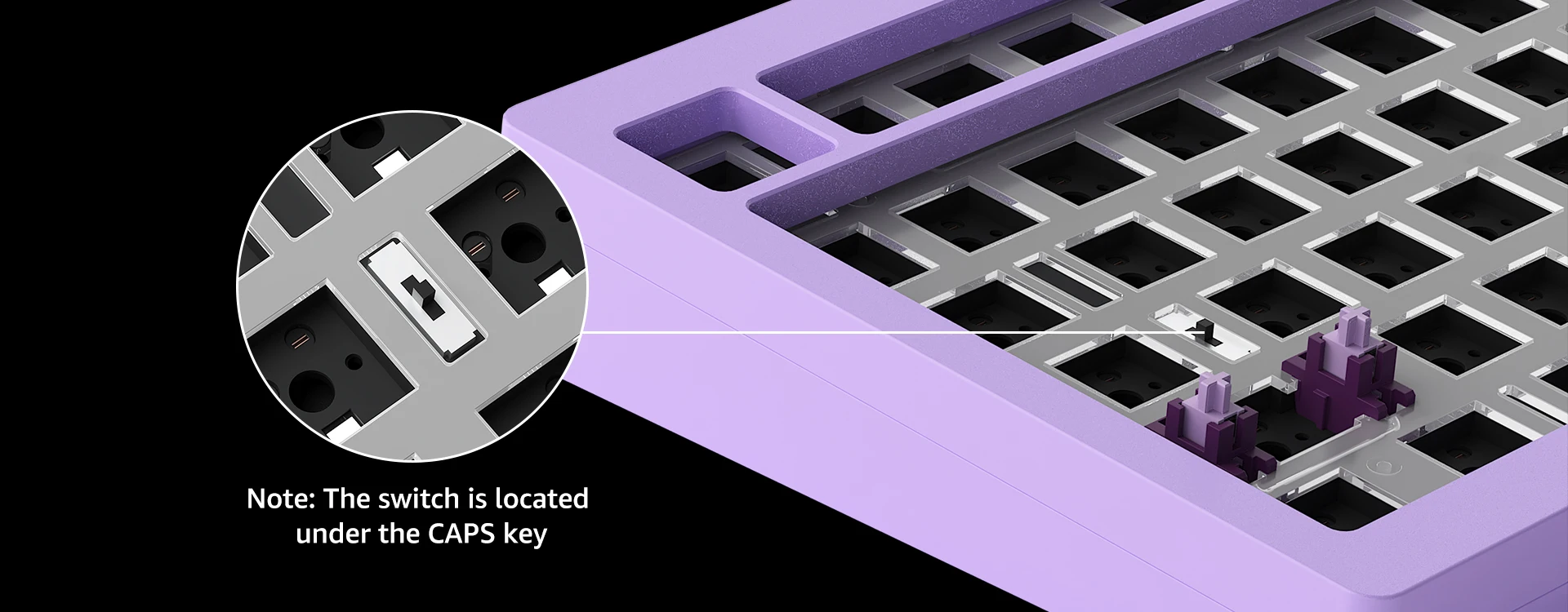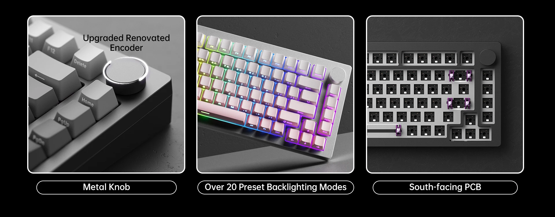 La PCB orientada al sur del teclado evita causar interferencias con las teclas de perfil Cherry durante la personalización, ofreciendo más compatibilidad y flexibilidad.Admite intercambiable en caliente de 5 pines.
