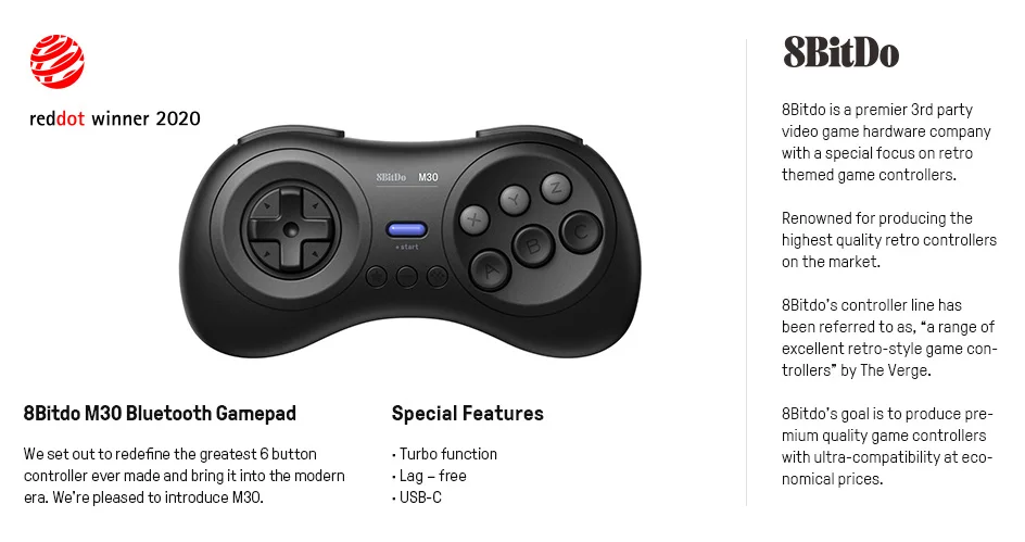 Gamepad Bluetooth 8BitDo M30 para Sega Genesis Mega Drive Style para Nintendo Switch
