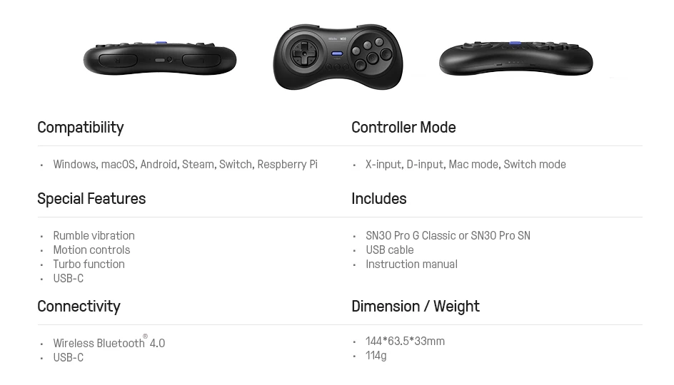 Comprar AKNES 8BitDo M30 Bluetooth Gamepad controlador de juego estilo MD para Nintendo Switch PC macOS Android Raspberry Pi accesorios de juego