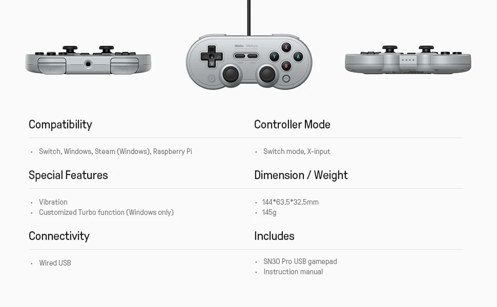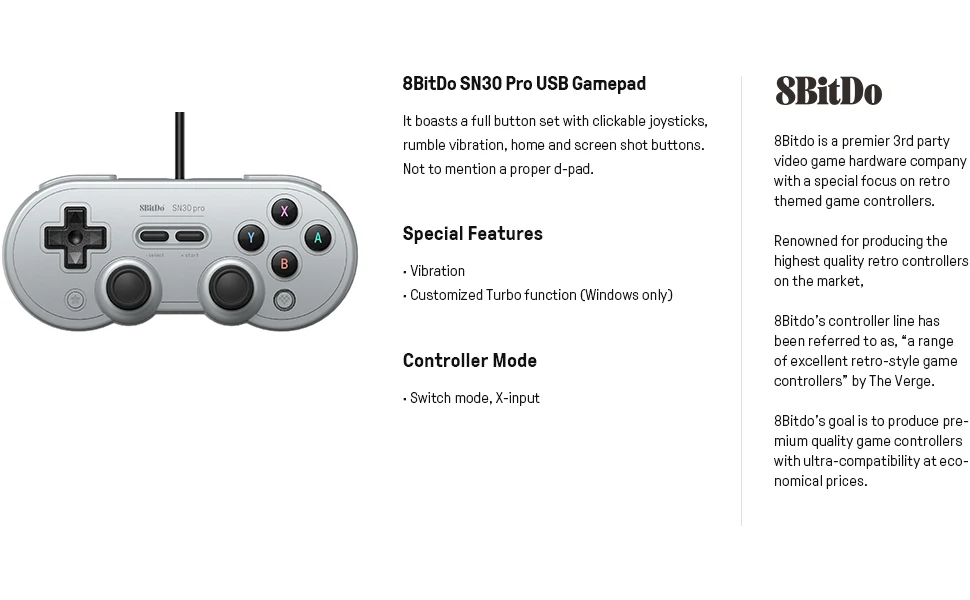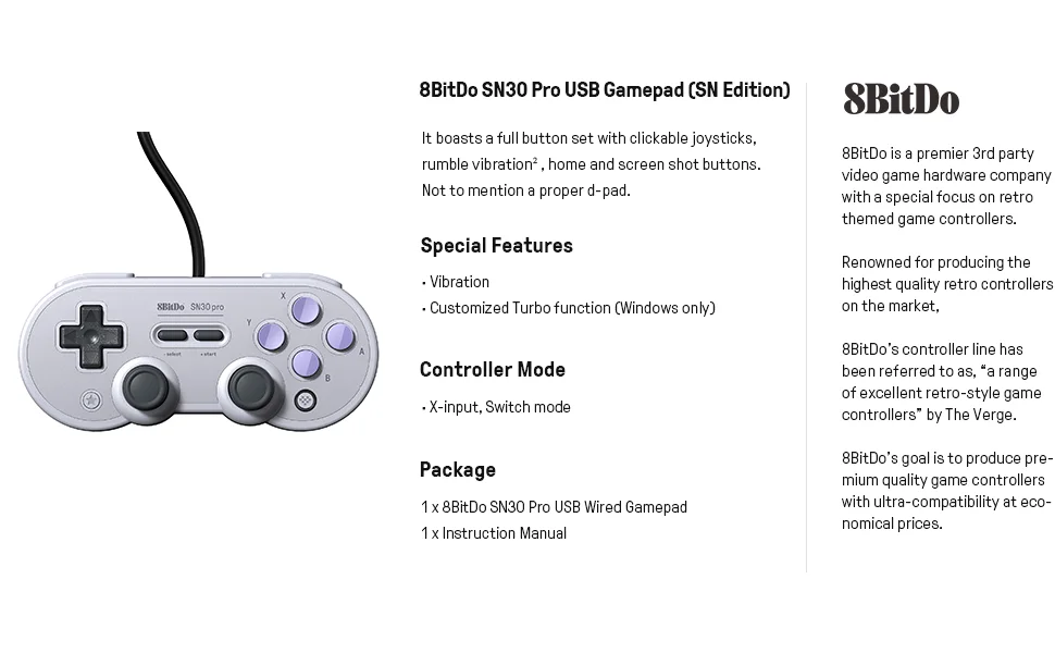 Nueva versión de Gamepad USB SN30 Pro, es un controlador con cable USB.