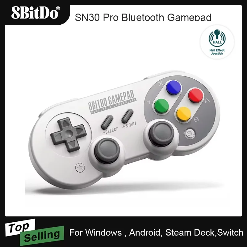 8 BitDo SF30 Pro controlador de juego inalámbrico Bluetooth, con diseño clásico d-pad y botón, te recuerda a las consolas de juego retro de 8 bits de los años 80 y 90. El controlador de juego 8 Bitdo SN30 Pro inalámbrico con Bluetooth funciona con tu Teléfono para jugar aplicaciones usando un controlador de juego con entrada táctil real. También es compatible con Windows Android macOS vapor Nintendo interruptor 8 Bitdo SN30 Pro controlador de juego inalámbrico Bluetooth es el mejor para la lucha, la acción de disparo y los juegos emuladores.