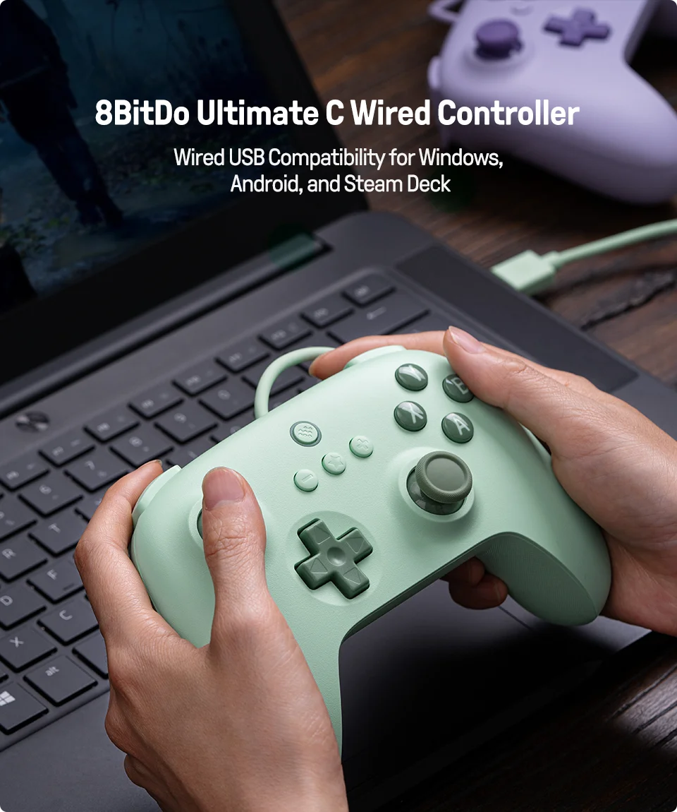 Diseñamos Ultimate C Wired Controller para que sea una versión aún más rentable y simplificada de Ultimate. Mismo 8BitDo Ultimate calidad de construcción con un precio aún más definitivo. Disponible en verde pastel y morado con el mismo agarre mejorado.