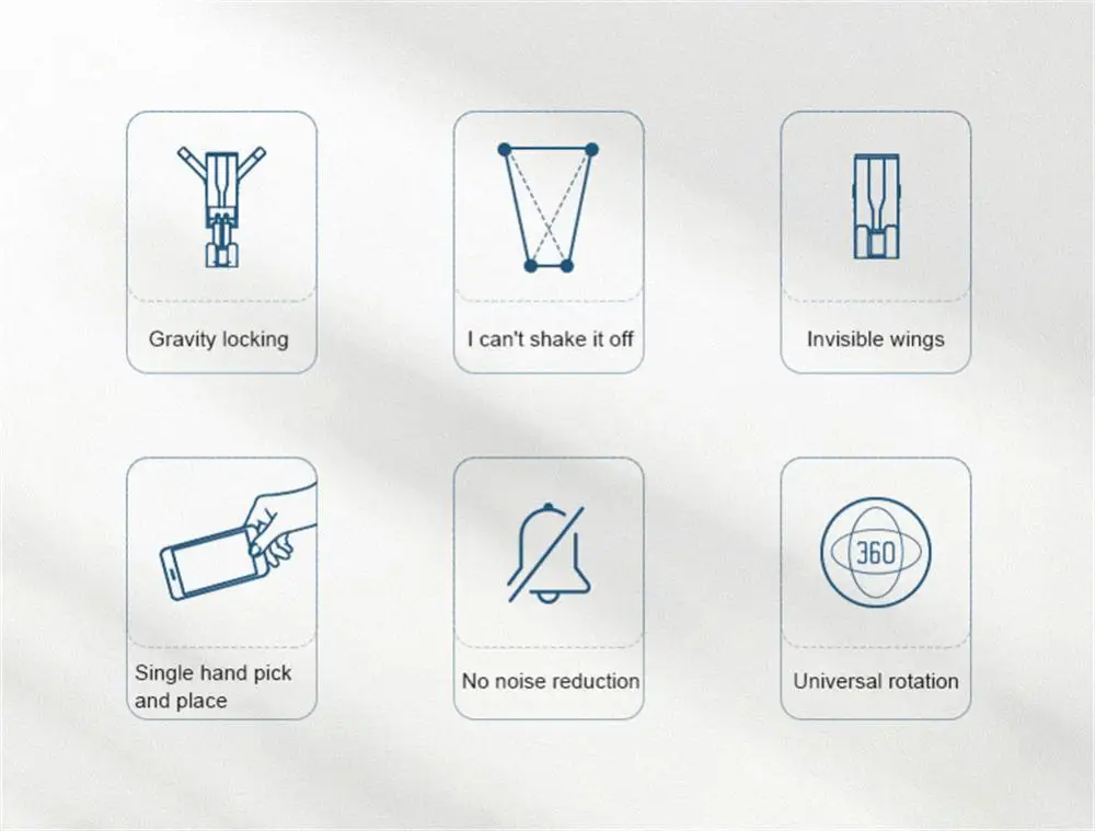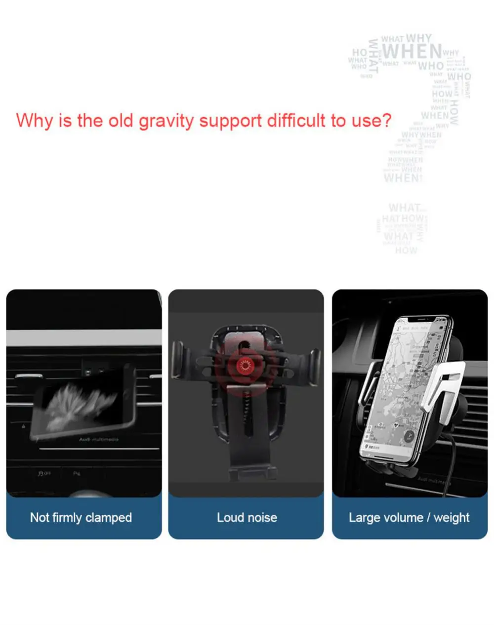 Acceso con una sola mano, bloqueo por gravedad, no puede temblar violentamente, invisible, reducción de ruido, rotación universal. Cuanto más pesado es el peso, más estable es y no se puede sacudir violentamente. Usando la gravedad del teléfono móvil, tire de los brazos de la abrazadera en ambos lados para girar y contraerse para fijar el teléfono móvil. Rotación universal de 360 grados, ángulo de visión más flexible. Protección completa de silicona, sin daños a la máquina. Reserve un puerto de carga para cargar mientras navega. Pequeño y práctico.