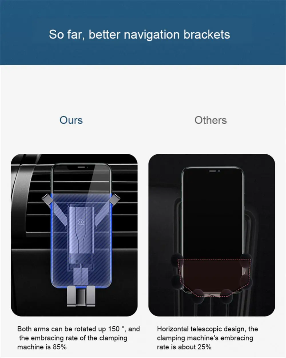 Comprar Ala soporte de gravedad para coche, salida de aire, totalmente automática, doble brazo, navegación para coche, soporte para teléfono móvil
