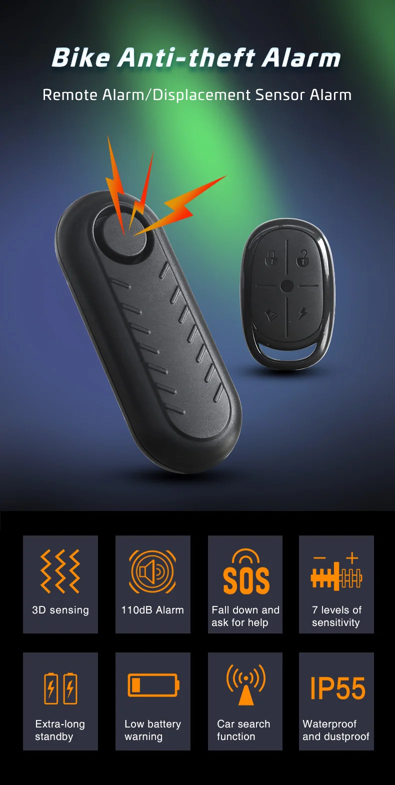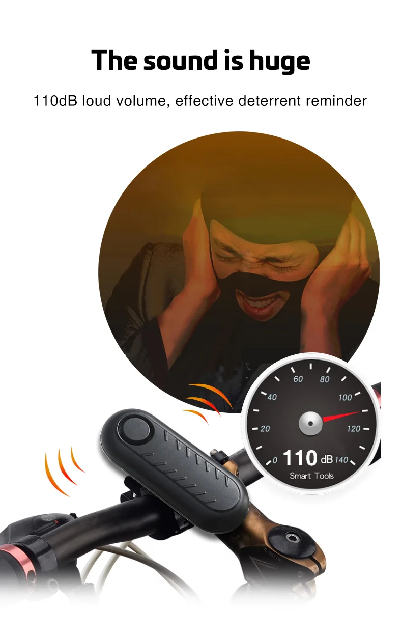Alarma inalámbrica para bicicleta, alarma antirrobo con vibración para bicicleta, alerta impermeable para motocicleta, Control remoto, seguridad eléctrica, sonido de 110dB