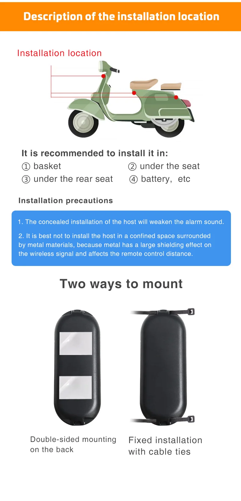 1.La instalación oculta del host debilitará el sonido de la alarma.