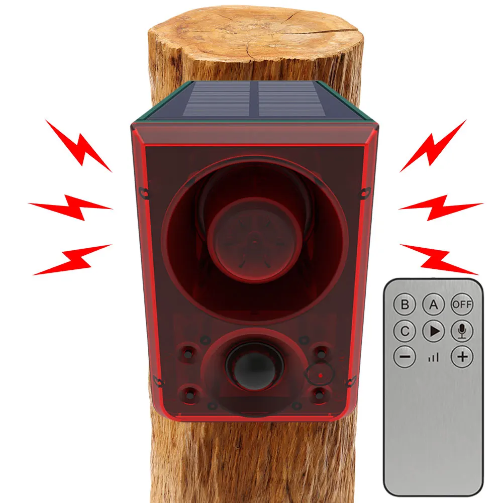 3. Funcionalidad de transmisión integrada:Con una potente funcionalidad de transmisión de ruido fuerte, este repelente de animales proporciona una cobertura de sonido eficaz para un monitoreo integral del área.