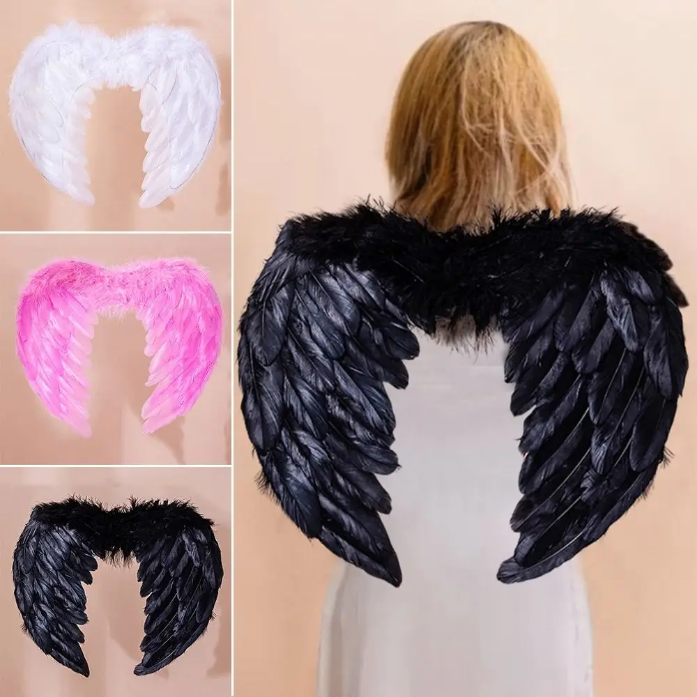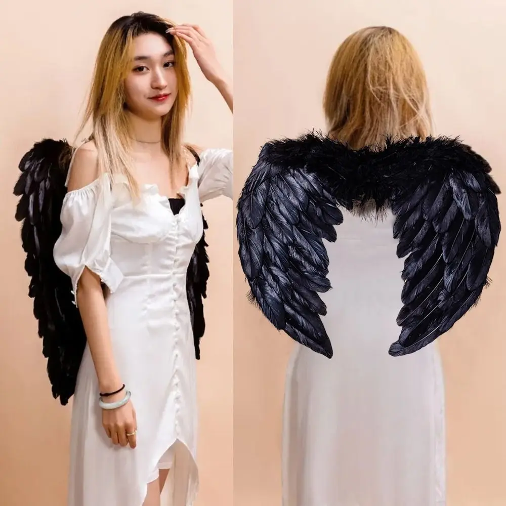 Comprar Alas de plumas blancas y negras para niños y adultos, Ángel, diablo, ángel caído, Cosplay, alas pequeñas, Halloween, Carnaval, fiesta de cumpleaños, disfraz