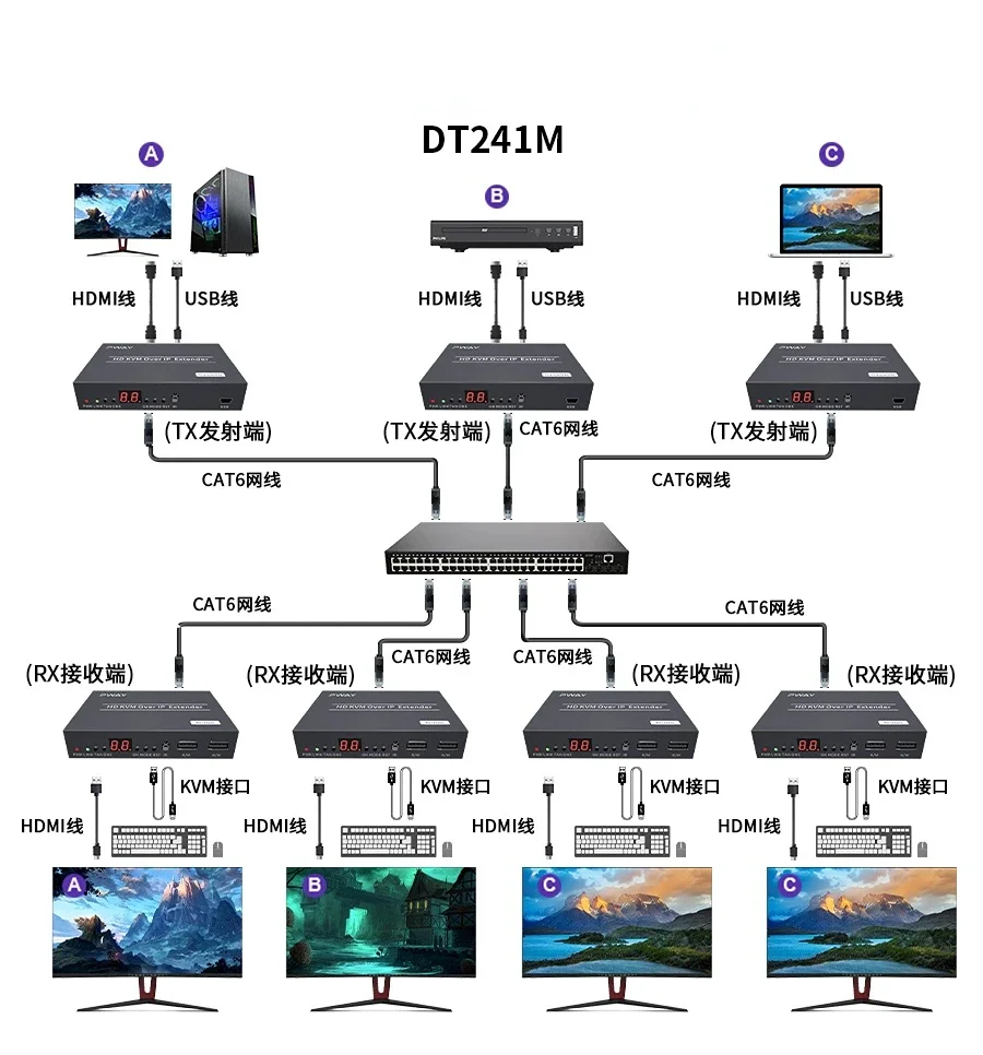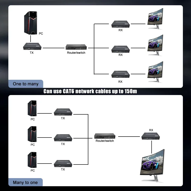 Distancia de transmisión: hasta 200m a través de un solo cable CAT5e CAT6.