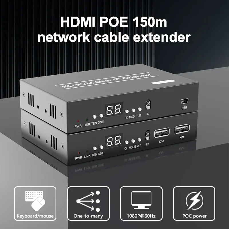 Este extensor HDMI proporciona extensión de señales HDMI a largas distancias a través de un solo cable CAT5e/6/7, admite alta resolución de hasta 1080P @ 60Hz, señal de teclado y ratón, transmisión de bucle IR y HDMI. Es compatible con aplicaciones de uno a uno, de uno a muchos, de muchos a uno. El extensor se puede utilizar para una amplia gama de aplicaciones que requieren transmisión a larga distancia de alta resolución con alta calidad por su buena estabilidad y potente seguridad.