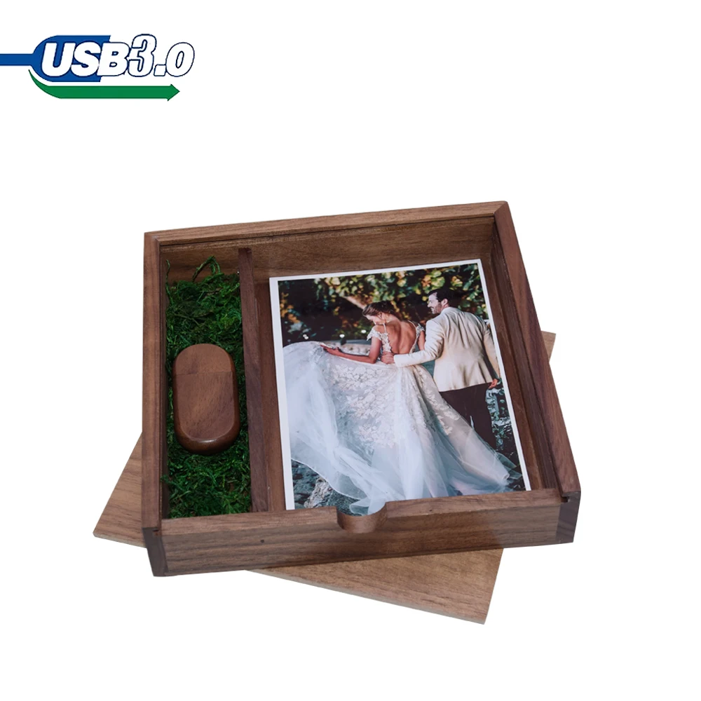 Comprar Álbum de fotos de madera de nogal, Pendrive USB 3,0 + caja, unidad Flash, 8GB, 16GB, 32GB, 64GB, 128GB, 1 piezas