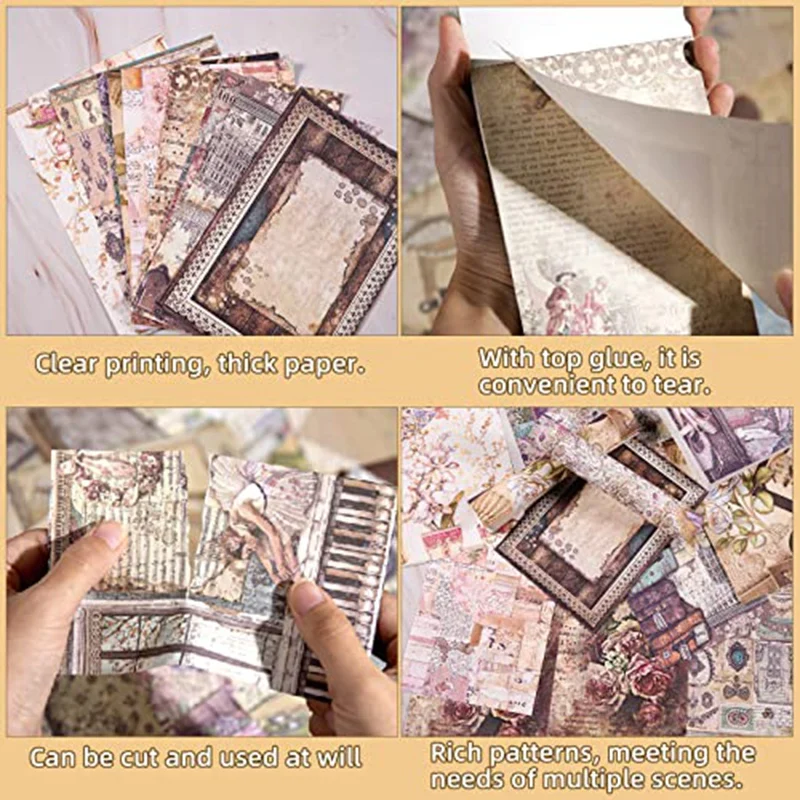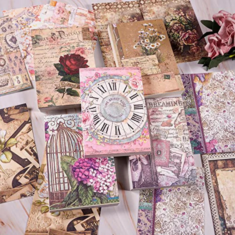 Alta calidad: el papel Retro Para álbum de recortes está hecho de papel ligero de alta calidad con superficie lisa e impreso con patrones estéticos claros. El papel del portapapeles será la mejor opción para Collage, tarjetas manuales y recortes de papel.