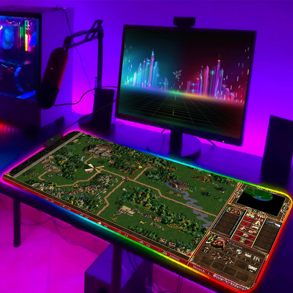 Comprar Alfombra Led Anime Mouse Pad Rgb Heroes of Might and Magic 3, alfombrilla para mesa de oficina, alfombrilla de ratón extendida XXL, alfombrilla de escritorio para computadora