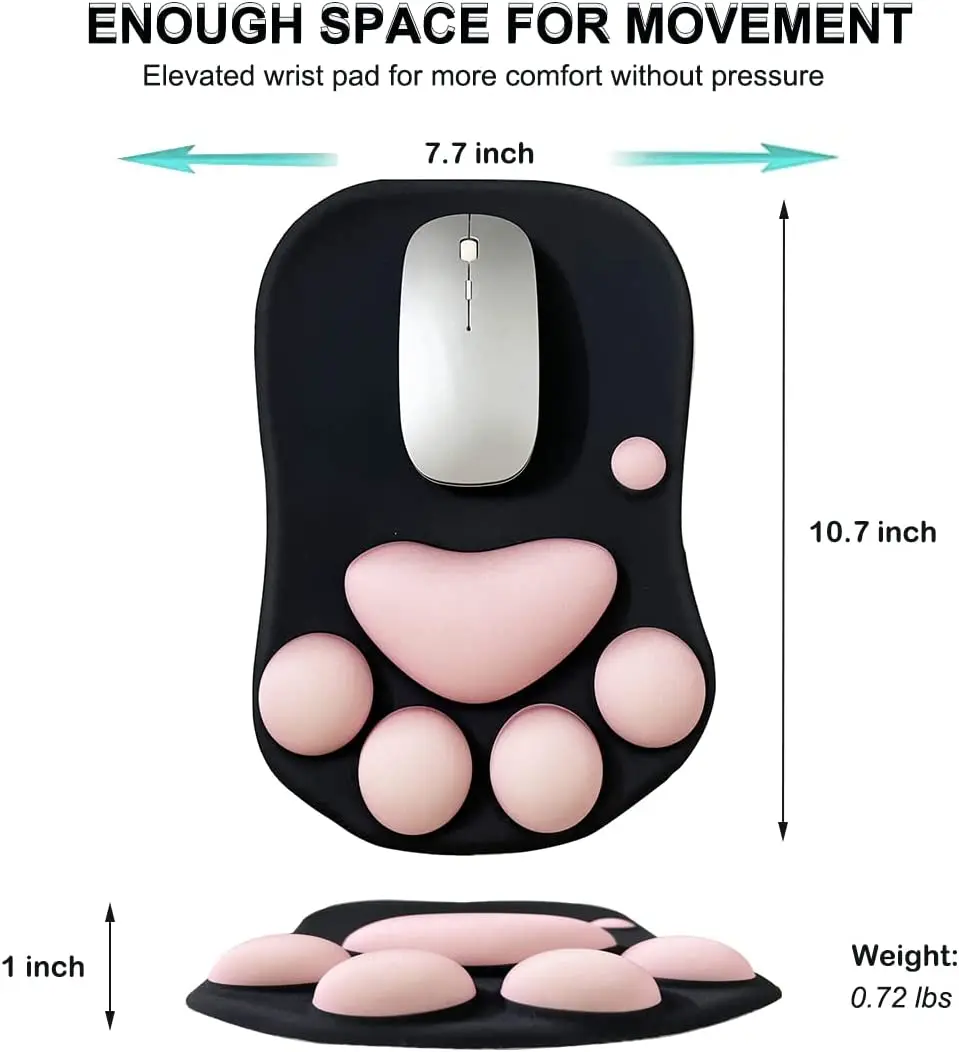 3.Prácticas almohadillas de silicona con forma de pata de gato, alfombrilla de ratón con soporte para muñeca;