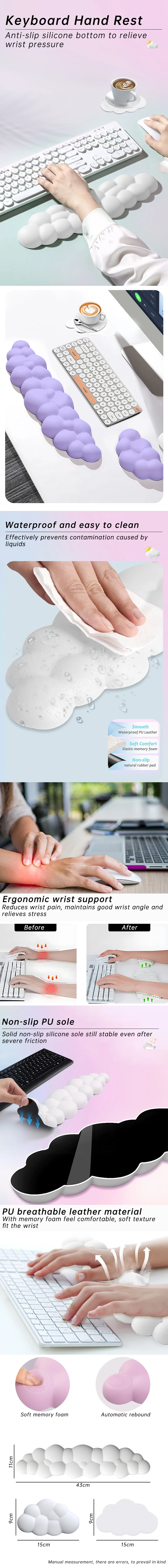 1. Diseño único y creativo: el teclado de reposamuñecas en la nube puede agregar un toque de fantasía y creatividad a su espacio de trabajo. Accesorio esencial para trabajadores de oficina, entusiastas de los juegos y la informática.