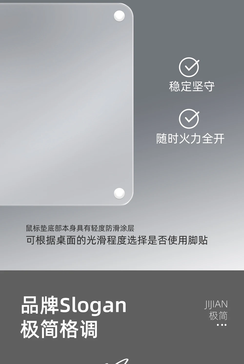 Adoptamos una solución de parche antideslizante para el pie para la parte inferior antideslizante, que es estable y antideslizante. La parte inferior de la alfombrilla del mouse tiene un suave revestimiento antideslizante y puede elegir si desea utilizar almohadillas para los pies según la suavidad del escritorio.
