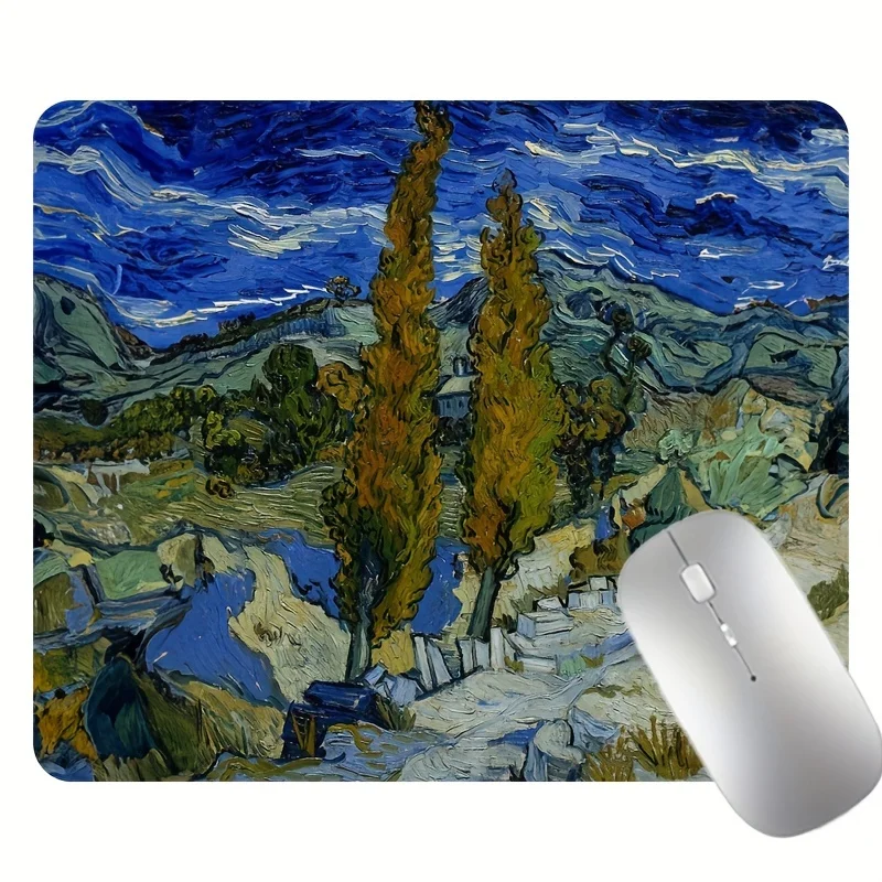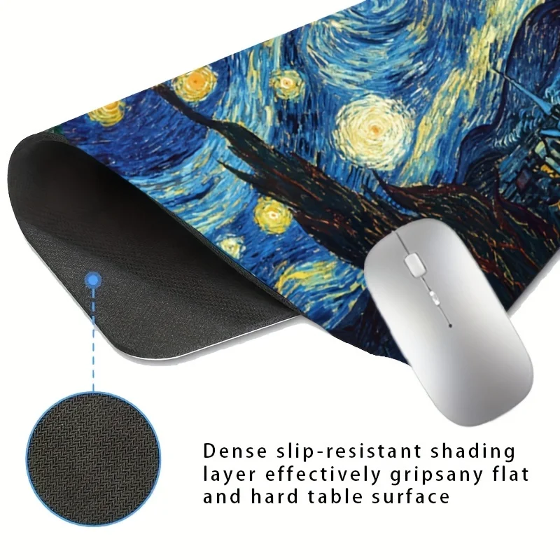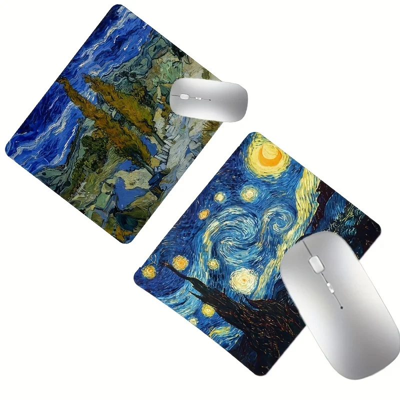 Comprar Alfombrilla de ratón cuadrada con pintura temática de cielo estrellado de Van Gogh, alfombrilla de mesa de 22x18/40x45cm, Base de goma antideslizante, uso en el hogar y la oficina