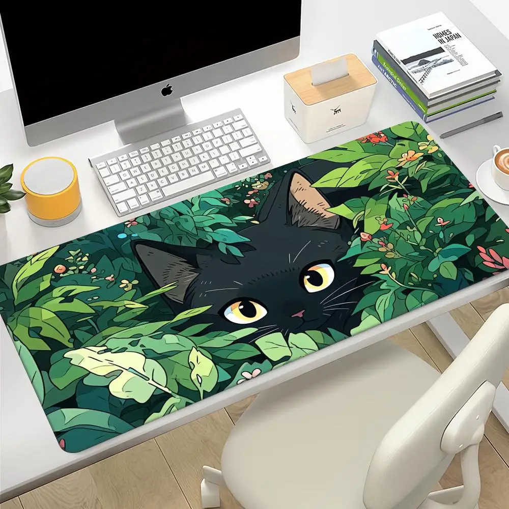 Comprar Alfombrilla de ratón con diseño de gato negro para ordenador, alfombrilla de ratón con diseño de plantas verdes mágicas para ordenador portátil, tapete de escritorio con diseño de rana de Anime Kawaii