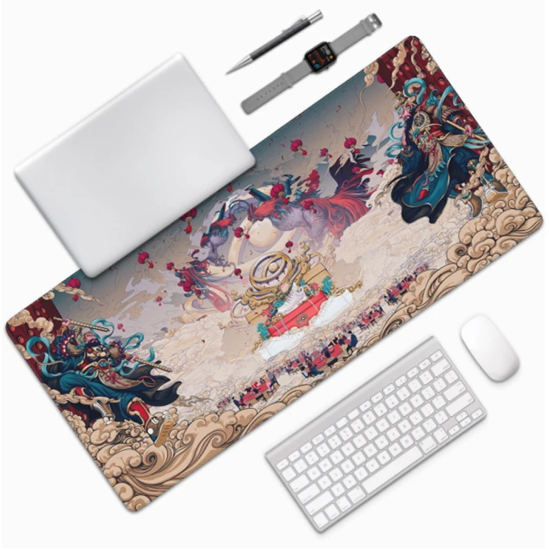 Comprar Alfombrilla de ratón de estilo chino, alfombrilla de ratón grande de Anime, alfombrillas de escritorio negras, antideslizantes, de goma, alfombrillas de escritorio para ordenador portátil, borde de bloqueo 90x40cm