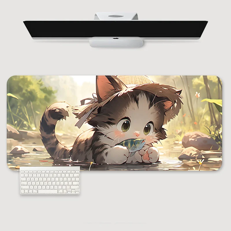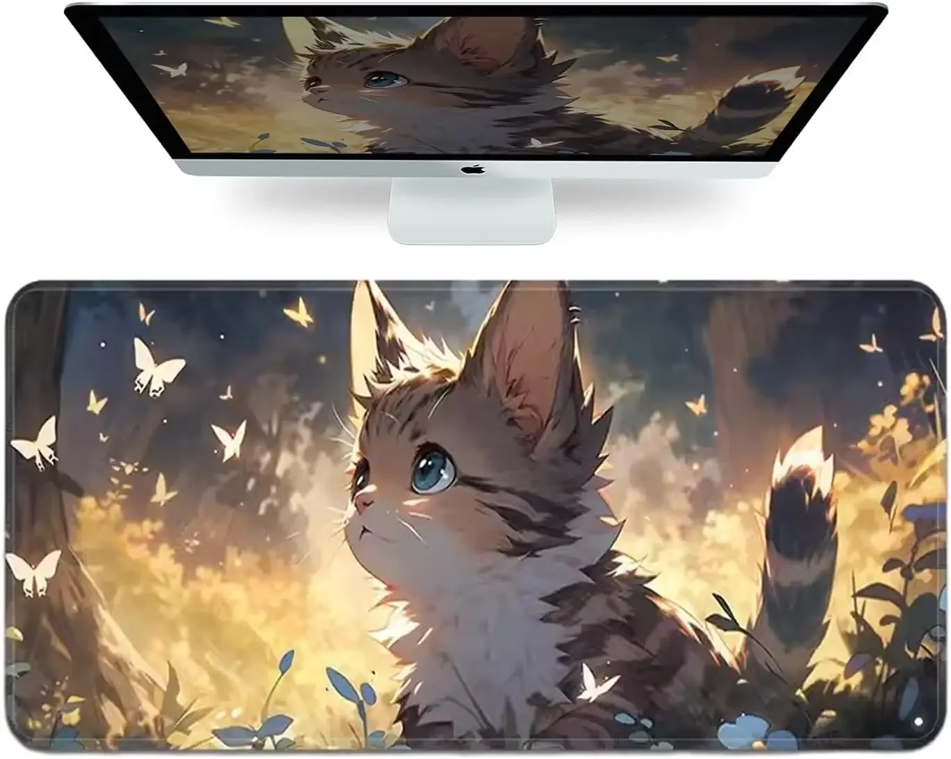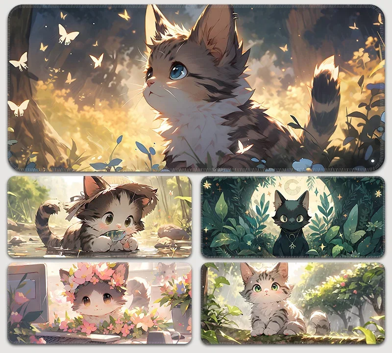 Comprar Alfombrilla de ratón Extra grande con cabeza de gato, alfombrilla de escritorio para juegos de Anime para teclado de ordenador portátil