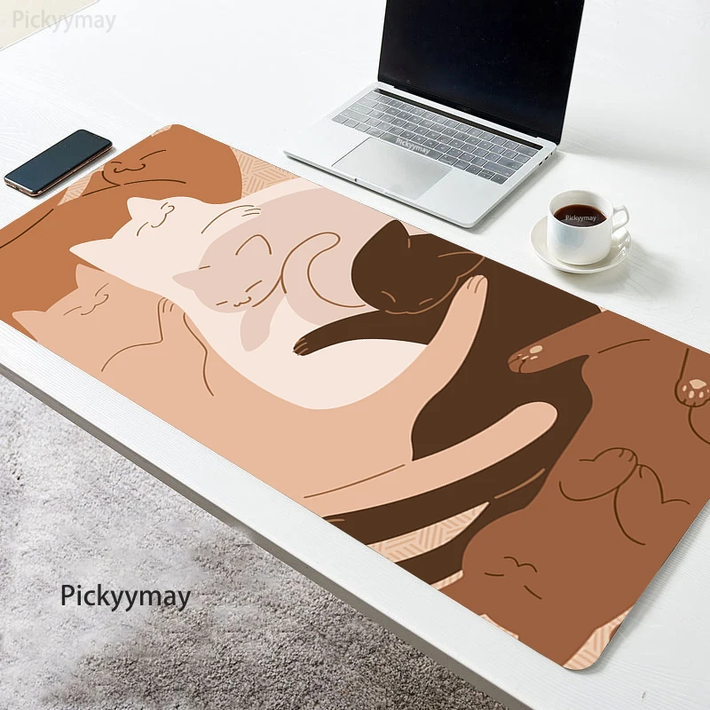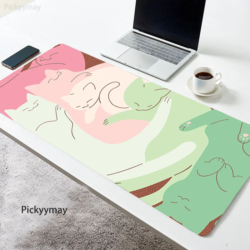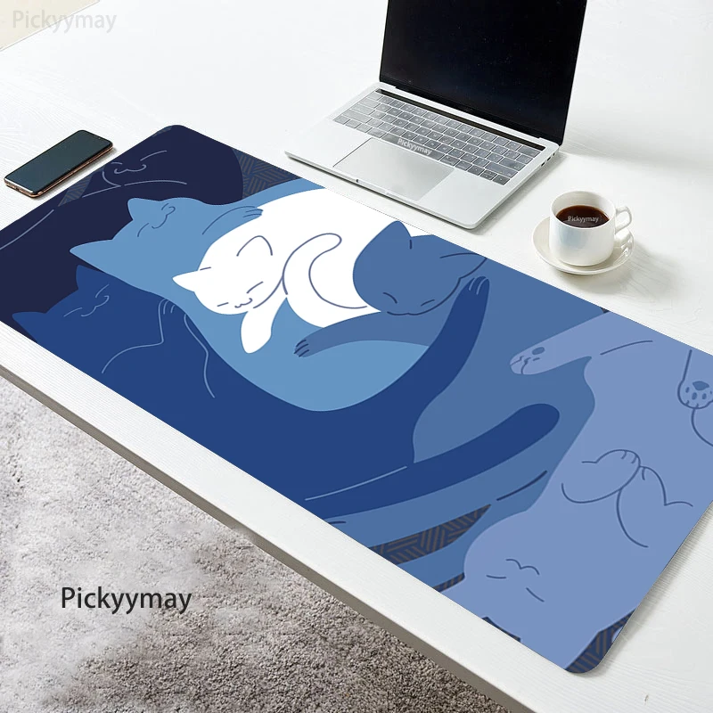 Comprar Alfombrilla de ratón de gato para oficina, alfombrilla grande para teclado, diseño de goma, 900x400, color blanco y negro, Kawaii