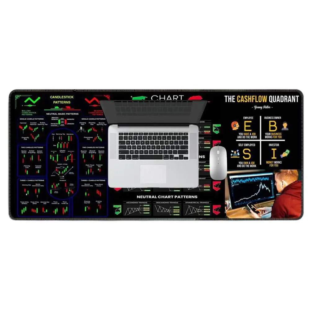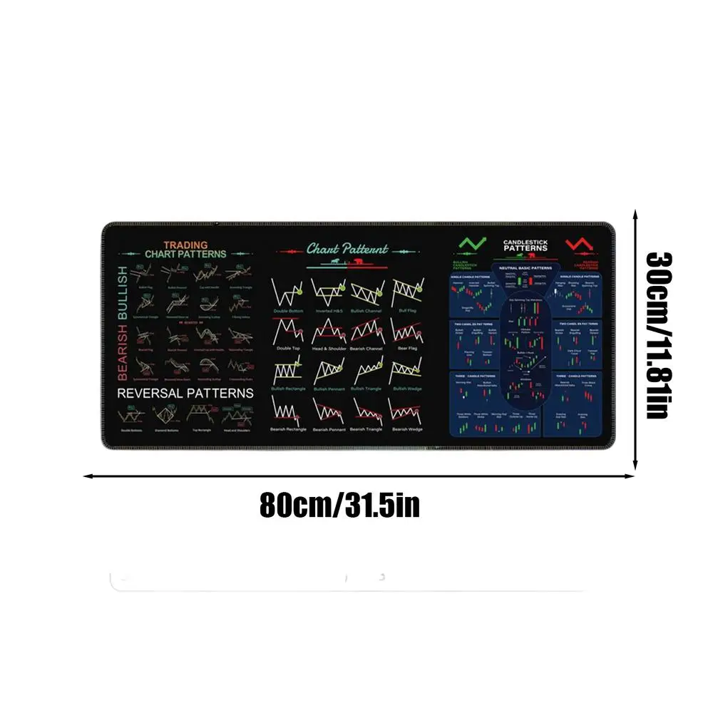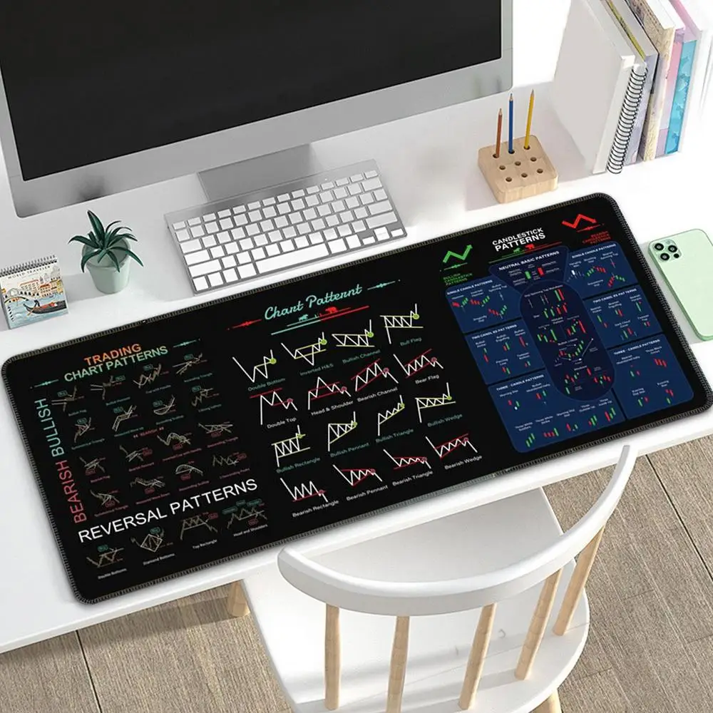 1. Patrón de gráfico: esta gran almohadilla de escritorio cuenta con impresiones de fórmulas financieras, patrones de gráficos e indicadores de comercio diurno, lo que permite a los usuarios obtener una comprensión más profunda de la dinámica del mercado, al mismo tiempo que agrega un toque decorativo único a cualquier trabajo.