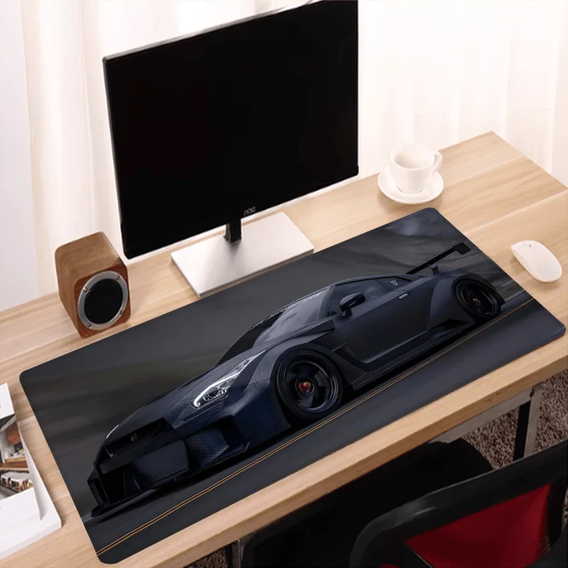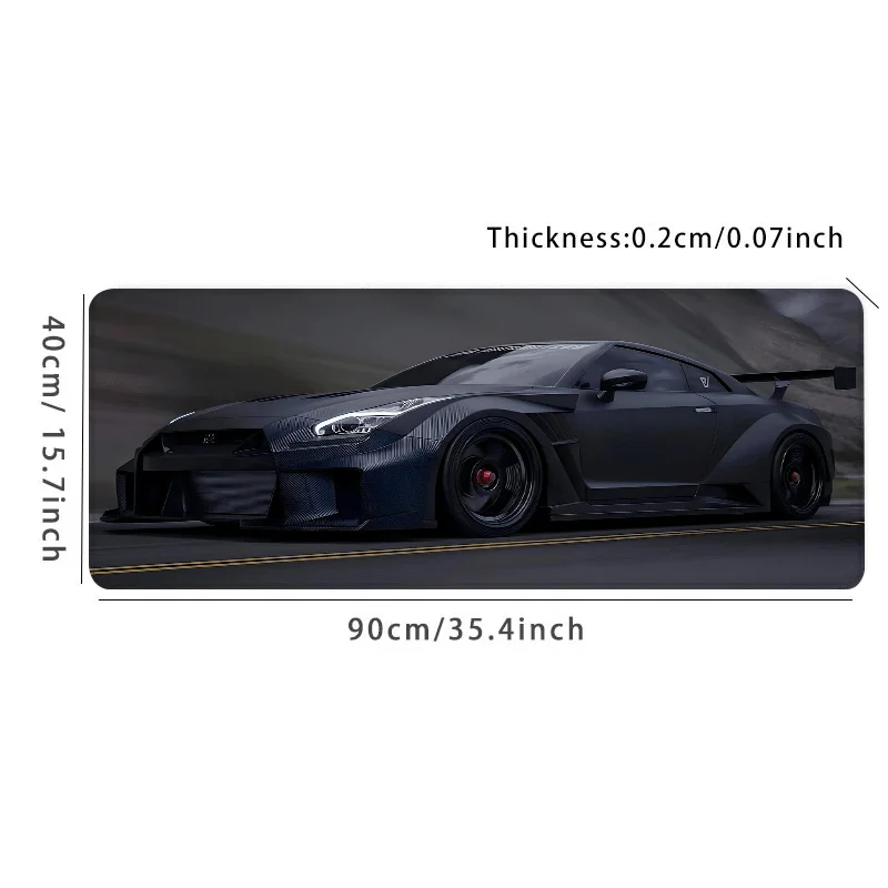 Alfombrilla de ratón grande para coche deportivo de carreras, color negro, 900x400MM, borde cosido de goma, accesorio de escritorio XXL para el hogar y la Oficina para entusiastas del coche