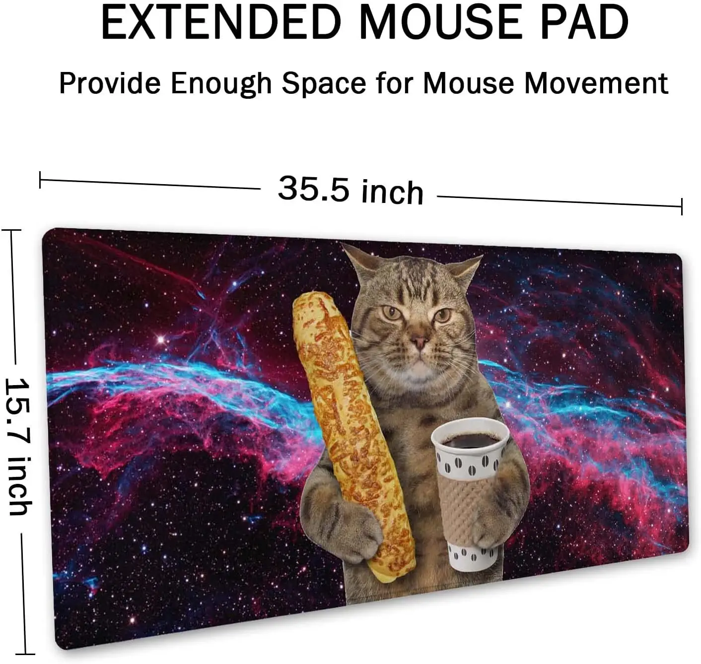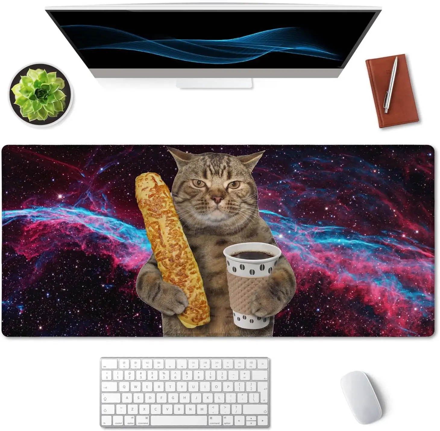 Comprar Alfombrilla de ratón grande con diseño de gato divertido, accesorios para juegos, bordes de bloqueo antideslizantes, lavable, adecuada para deportes electrónicos, oficina y uso doméstico, 90x40m