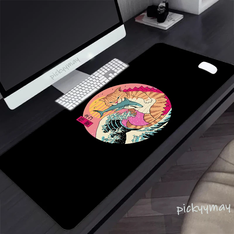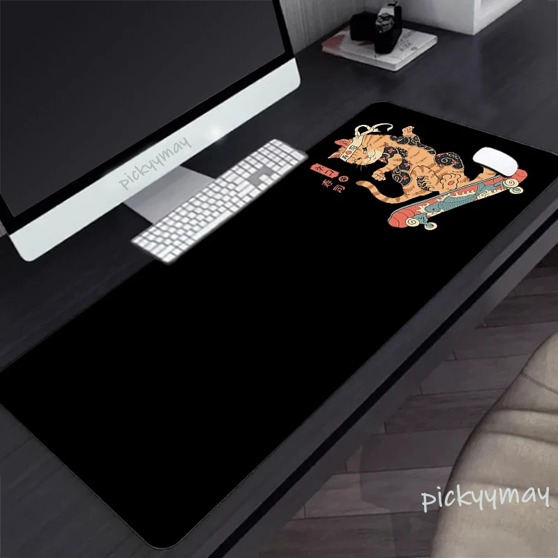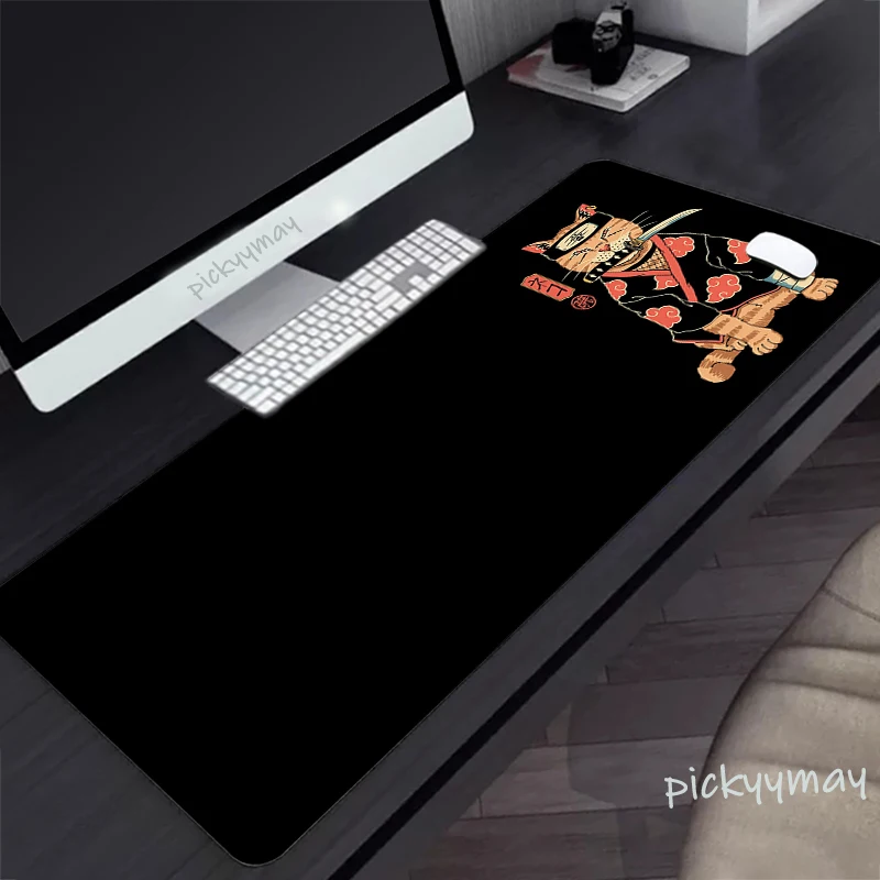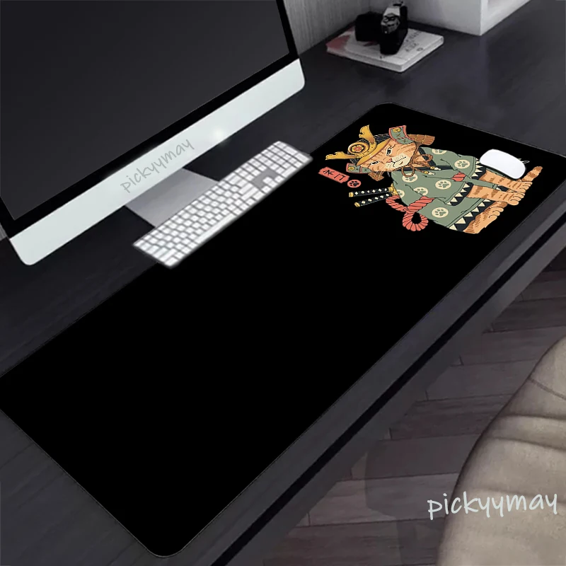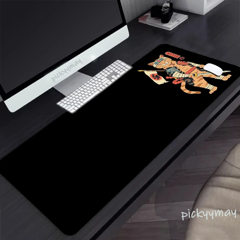 Comprar Alfombrilla de ratón grande con diseño de gato samurái japonés, alfombrillas de ratón de goma para teclado, color negro, HD, 900x400