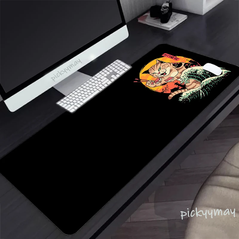 Comprar Alfombrilla de ratón grande con diseño de gato samurái japonés, alfombrillas de ratón de goma para teclado, color negro, HD, 900x400