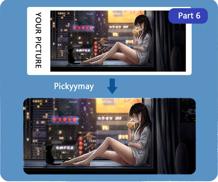 4. Estiramiento de imagen:Dado que la alfombrilla del ratón tiene varios tamaños, la imagen se estirará en una cierta proporción, por favor comprenda.Si desea evitar que la imagen se estire, contáctenos, le recomendaremos el tamaño más adecuado para usted