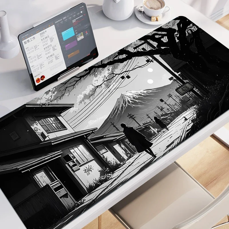 Comprar Alfombrilla de ratón grande Fuji de montaje negro japonés, alfombrilla de escritorio de Anime, Mini Pc, Gamer, ordenador, tableta, alfombrilla para ratón, portátil, accesorios para juegos de oficina