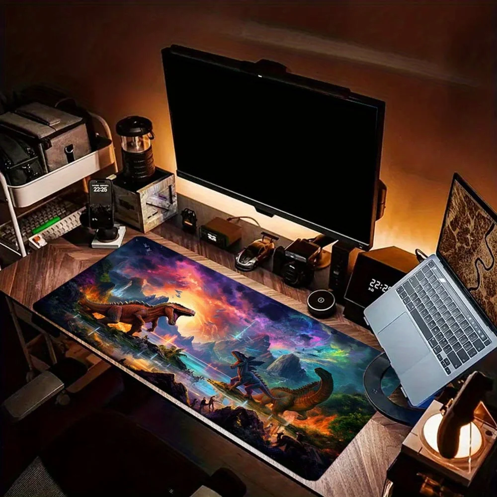 Comprar Alfombrilla de ratón grande para juegos de dinosaurios, alfombrilla de escritorio de refrigeración antideslizante de 900x400 para oficina y jugadores, accesorios de teclado duraderos y elegantes