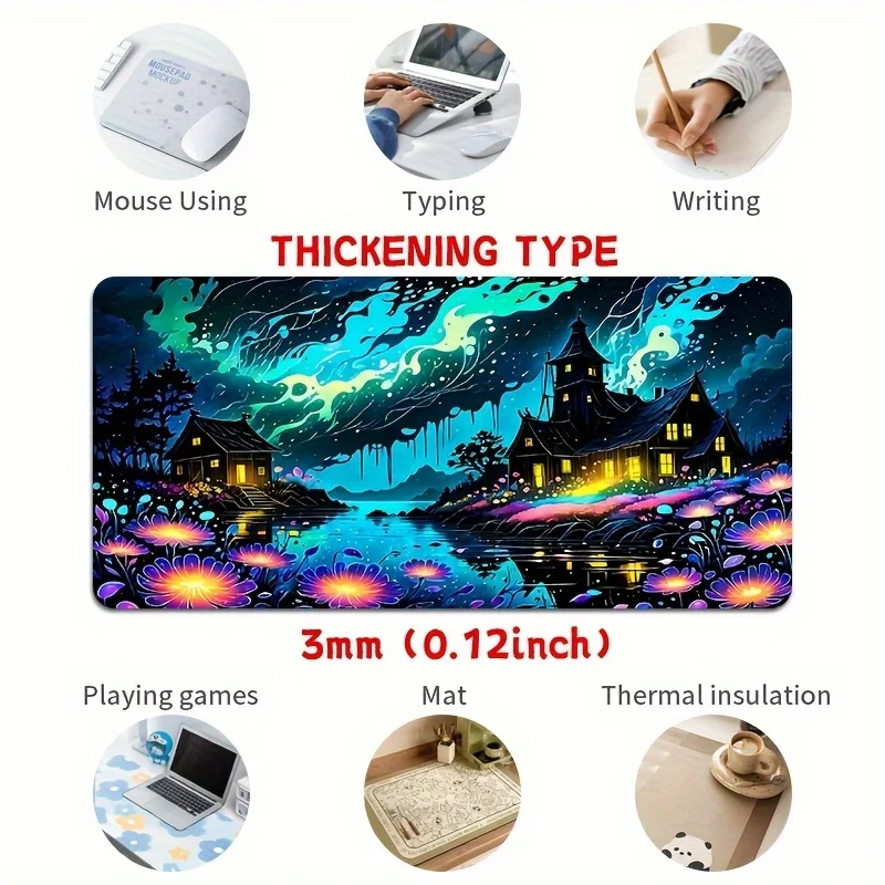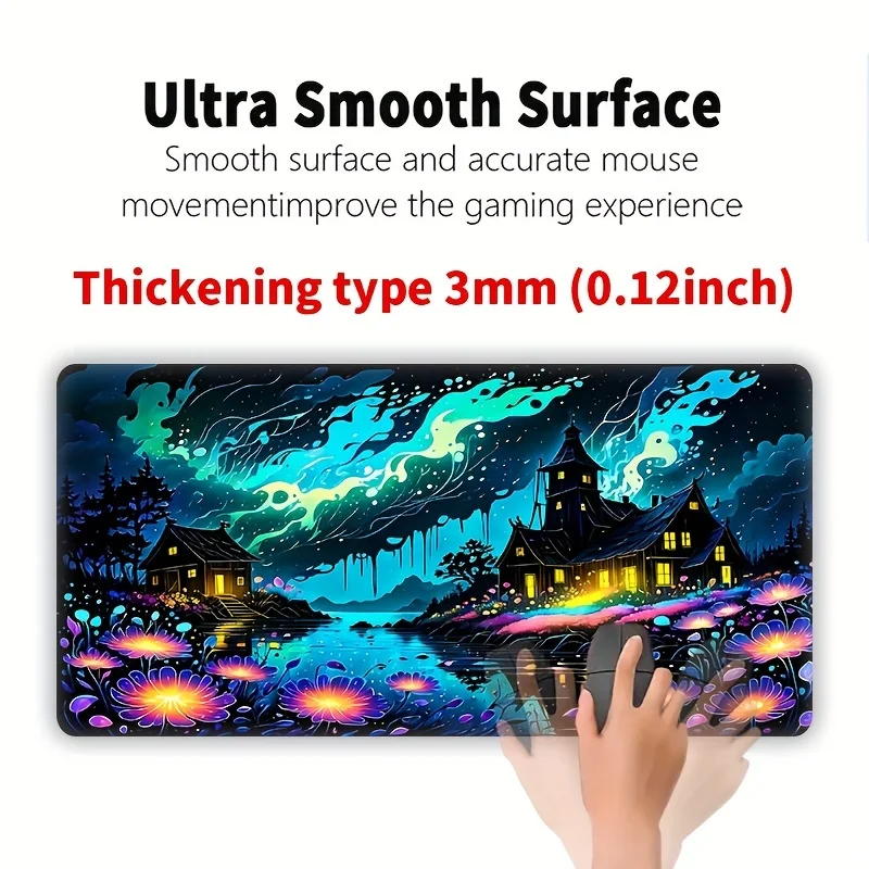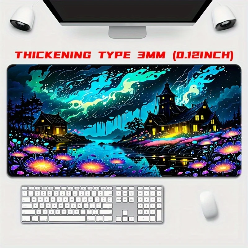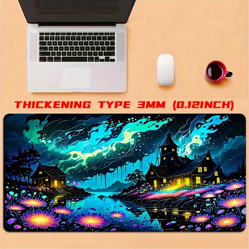 Alfombrilla de ratón grande con paisaje de ensueño, alfombrilla de escritorio de 900x400x3MM, bordes cosidos, alfombrilla de goma antideslizante para mesa, accesorios para juegos de oficina
