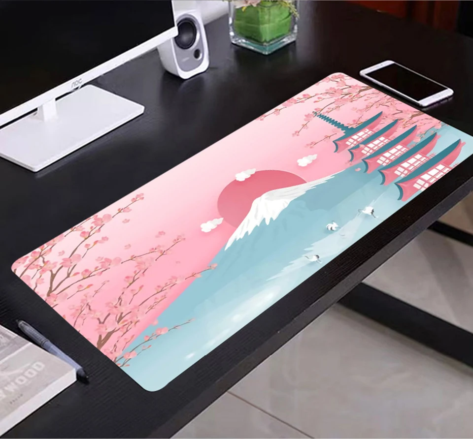 Comprar Alfombrilla de ratón grande con patrón Sakura para oficina, alfombrilla de goma antideslizante para escritorio, teclado de mesa, 900x400mm