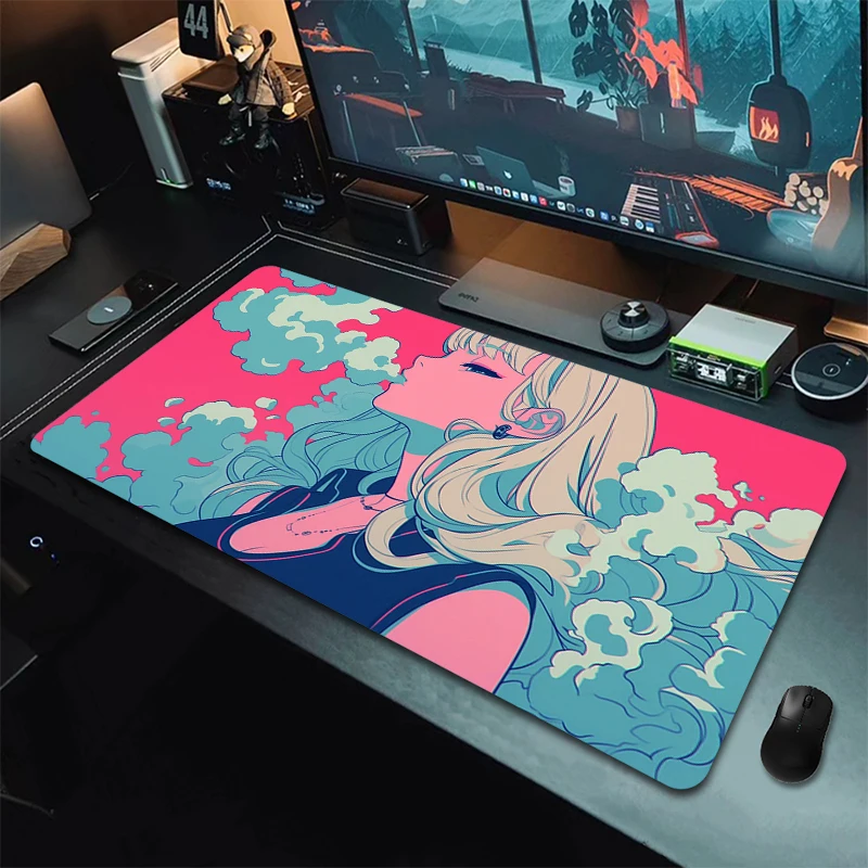 Alfombrilla de ratón grande XXL, alfombrilla de ratón antideslizante para oficina grande, alfombrilla de ratón de 900x400mm, alfombrilla de escritorio para ordenador, alfombrilla de teclado para niñas de Anime con estampado HD