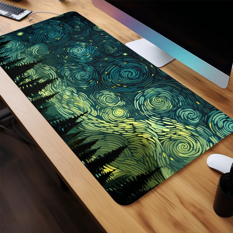 Alfombrilla de ratón para juegos extendida Starry Night Forest, alfombrilla de escritorio grande con base de goma antideslizante con bordes cosidos para el hogar, la oficina y los juegos