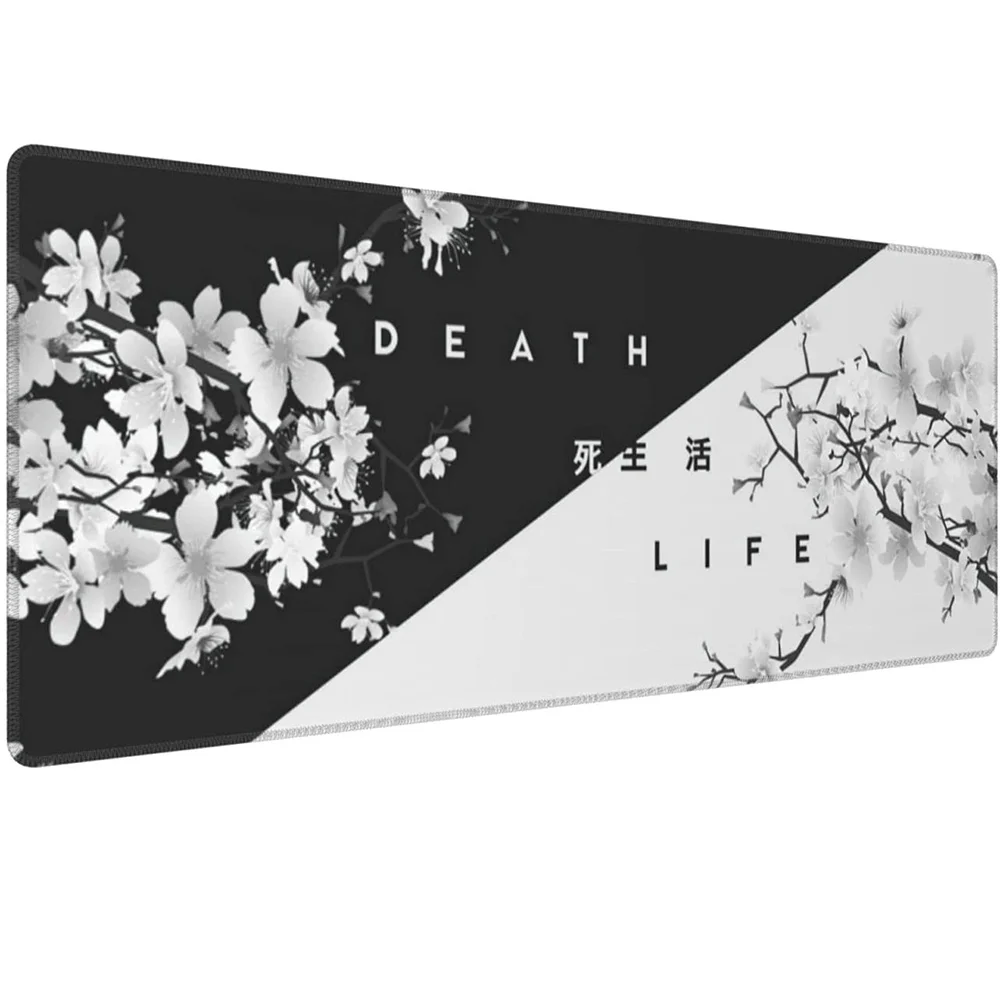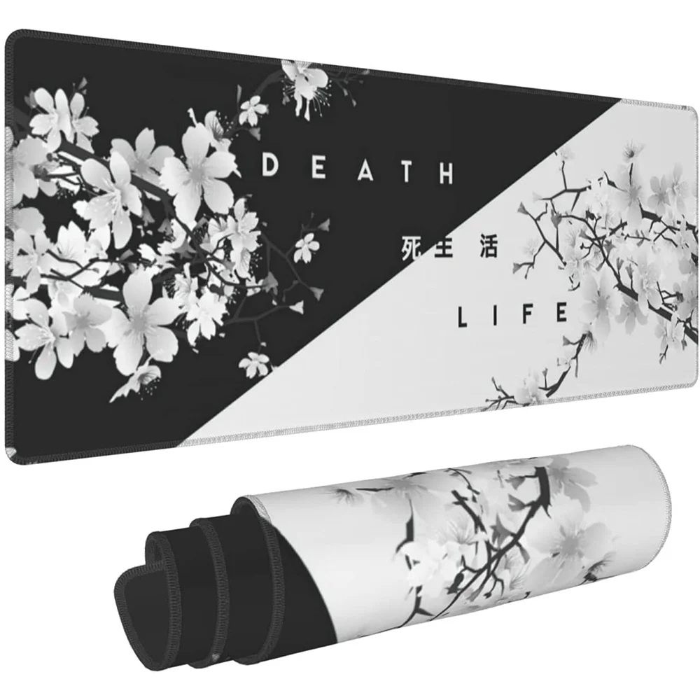 Comprar Alfombrilla de ratón para juegos con flor de cerezo en blanco y negro, alfombrilla de ratón grande para escritorio, alfombrilla de ratón con bordes cosidos, 31,5 x 11,8