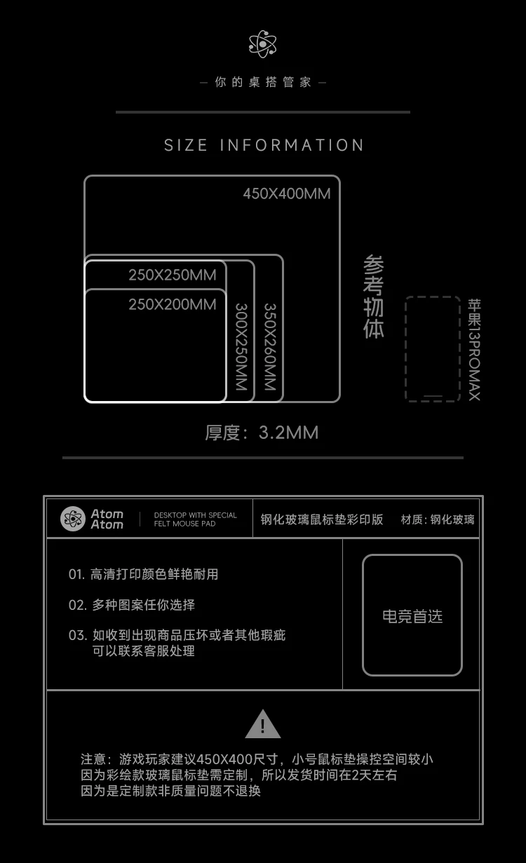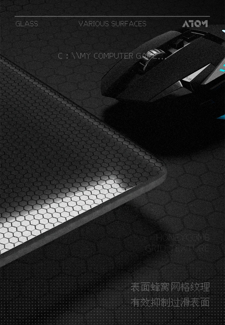 Alfombrilla de ratón para juegos de vidrio fotovoltaico ATOM, templada mejorada, súper grande, suave, inoxidable, FPS, alfombrilla para escritorio de oficina y juegos
