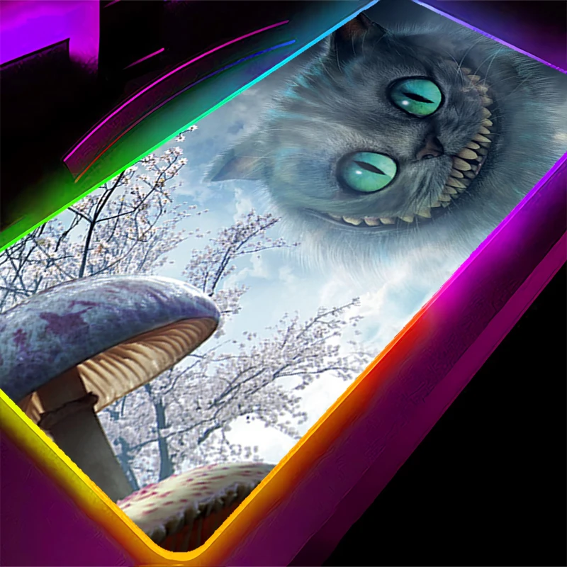 Comprar Alfombrilla de ratón LED RGB, alfombrilla de teclado HD, alfombrilla antideslizante para juegos, accesorios para PC, alfombrilla de ratón C-zhire Cat Alice en el país de las Maravillas, alfombrilla de escritorio de goma