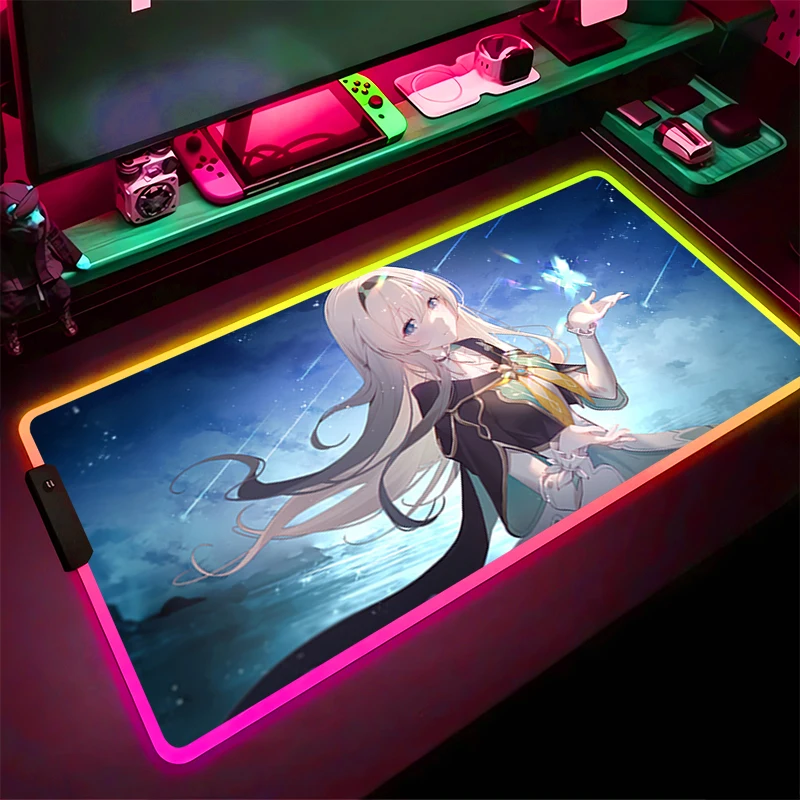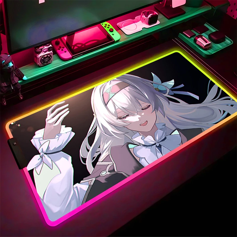 Alfombrilla de ratón LED RGB, alfombrilla de teclado HD, alfombrilla antideslizante para tableta de Anime h-honkai Star Rail Firefly, accesorios para PC, alfombrilla para ratón, alfombrilla de escritorio para juegos