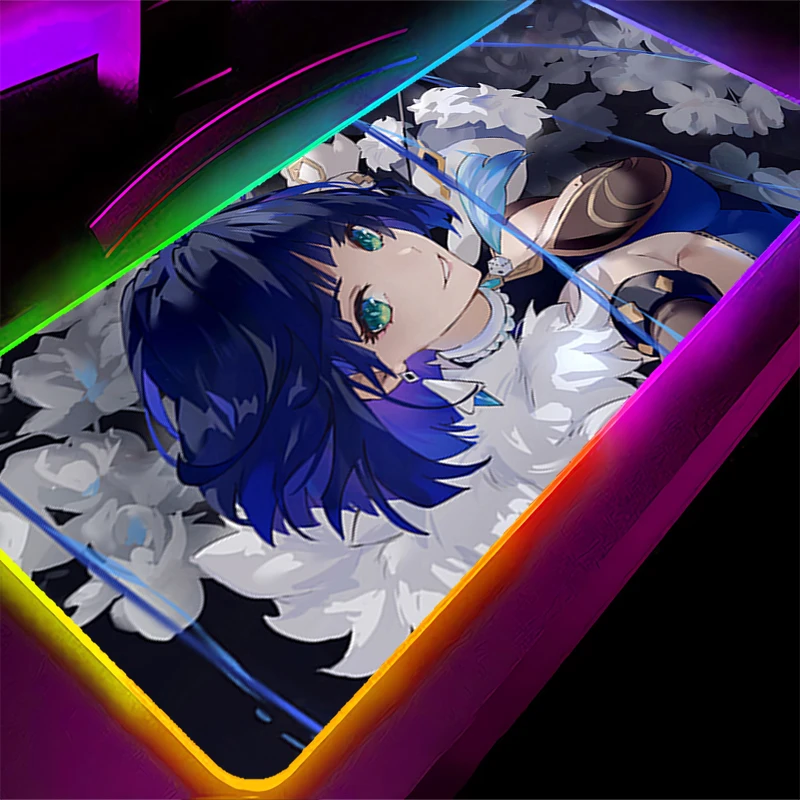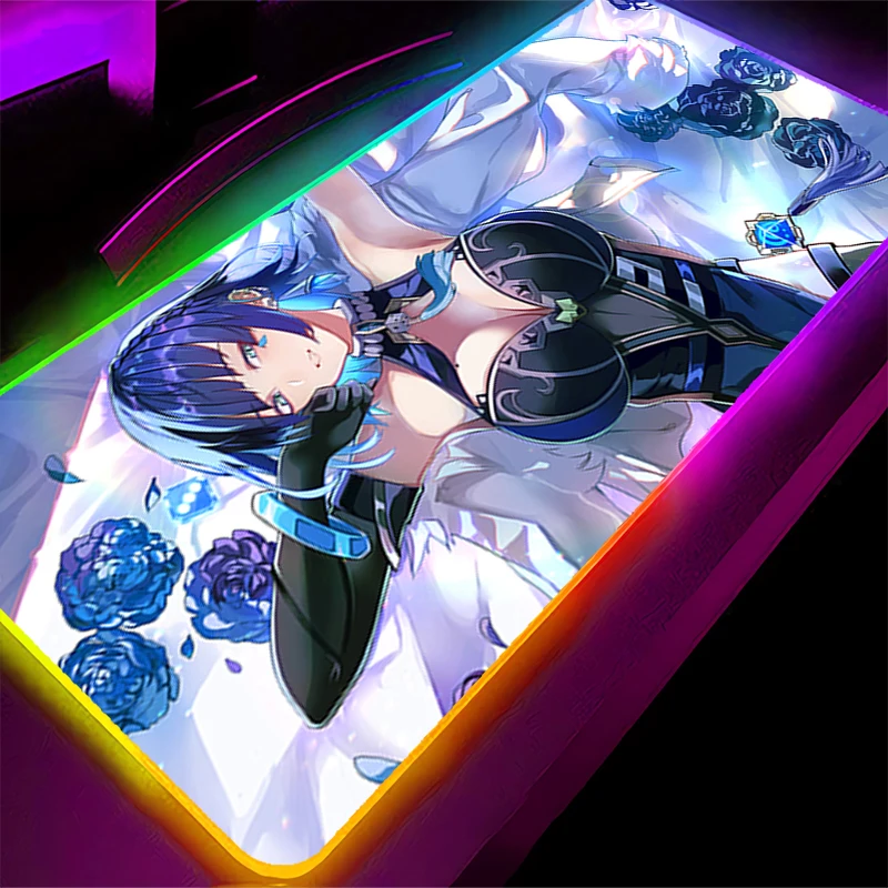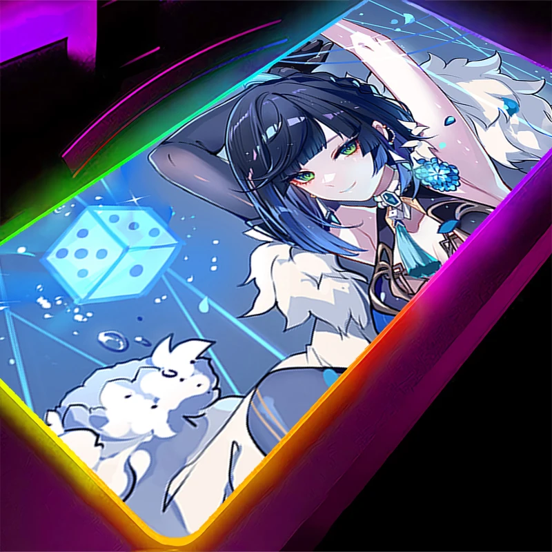 Comprar Alfombrilla de ratón LED RGB g-genshin Impact Yelan, alfombrillas para juegos de ordenador portátil, accesorios para PC, alfombrilla extendida para ratón de goma para oficina, alfombrilla antideslizante para escritorio