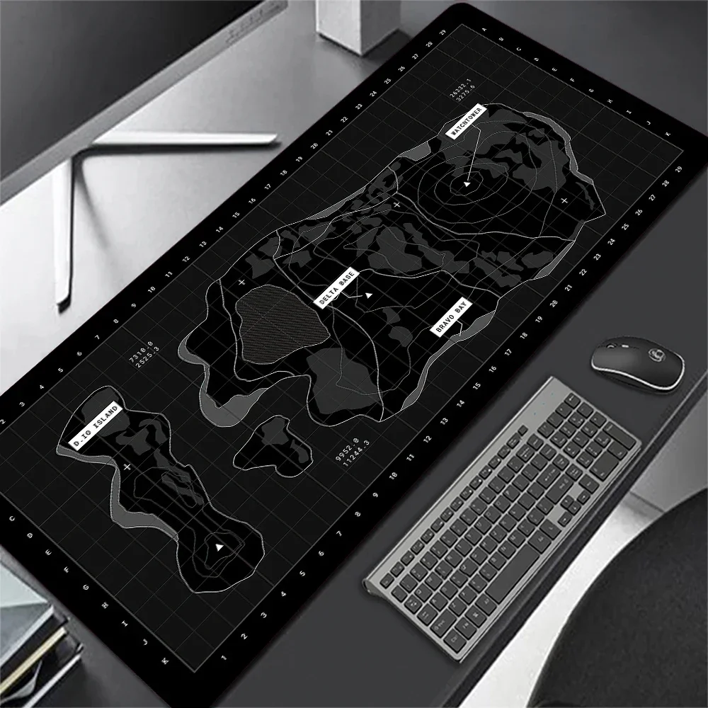 Alfombrilla de ratón negra, accesorios para juegos con mapa topográfico para jugadores, alfombrilla de escritorio grande para oficina, alfombrilla para teclado para ordenador, cojín para ratón, colchón