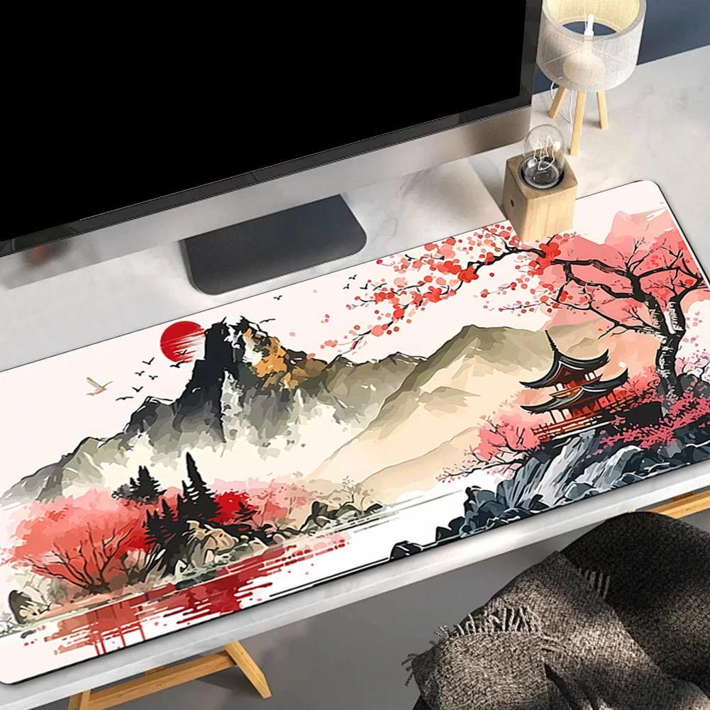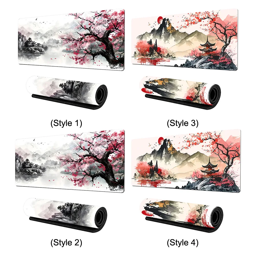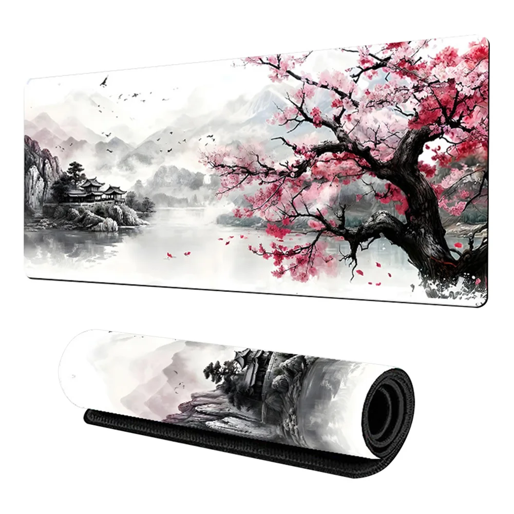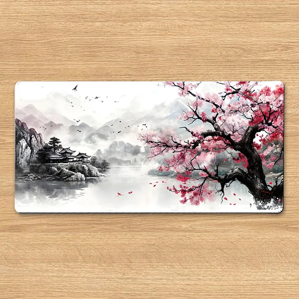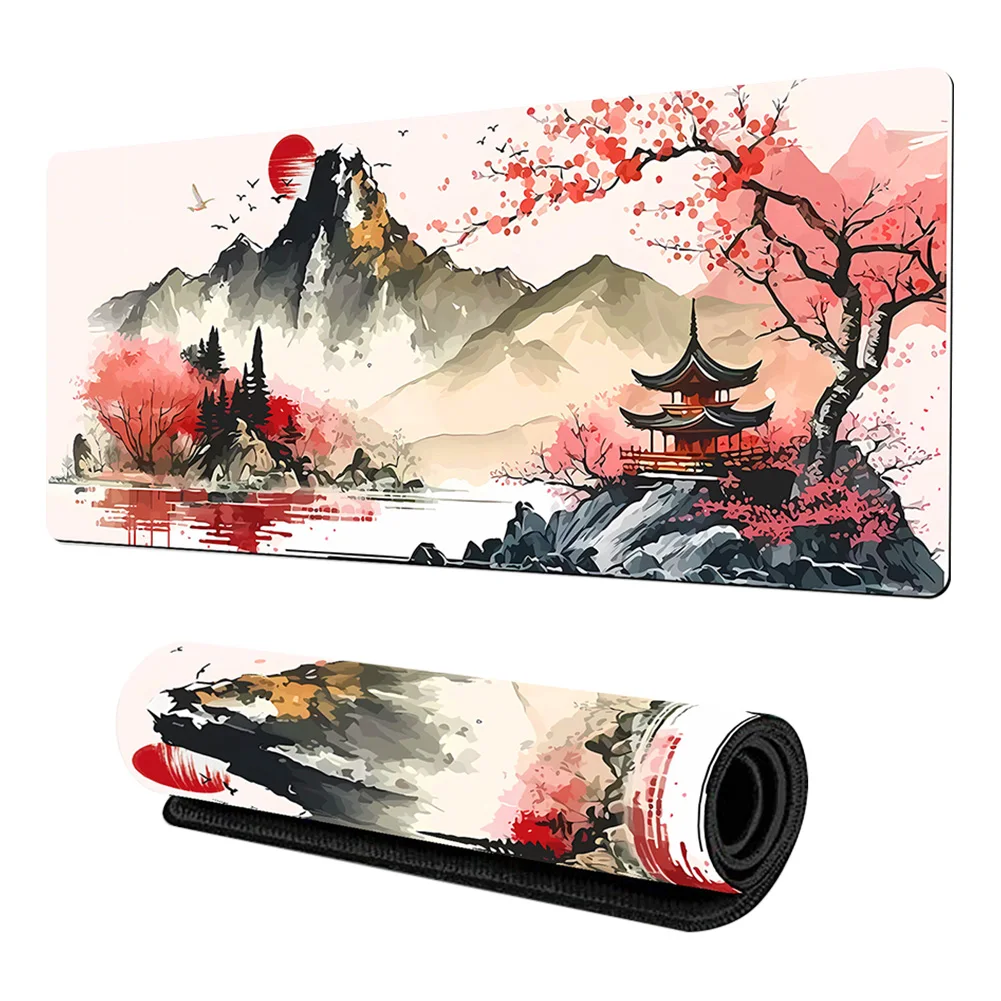 Alfombrilla de ratón de paisaje con tinta de agua de estilo chino Bordes cosidos Alfombrilla de ratón de paisaje de estilo chino Base antideslizante Tapete de decoración de escritorio para computadora de casa Oficina Laptop