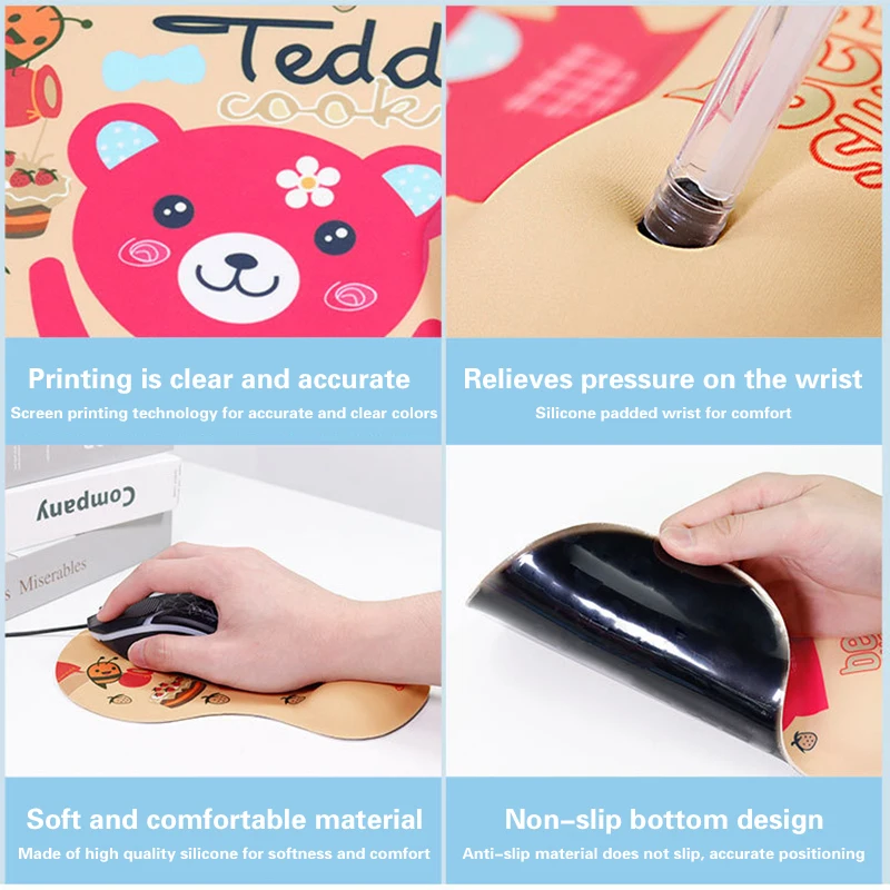 Comprar Alfombrilla de ratón personalizada con reposamuñecas, alfombrilla de escritorio antideslizante de silicona, soporte para la muñeca, bonita, para ordenador de oficina y escritorio